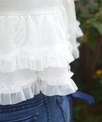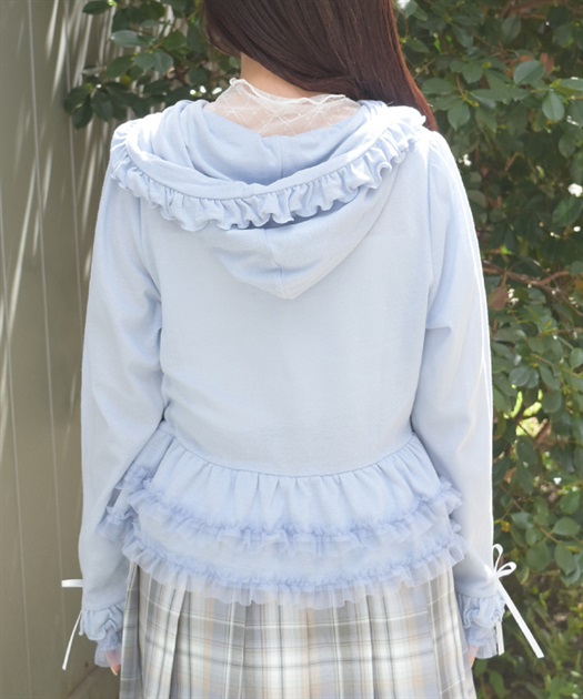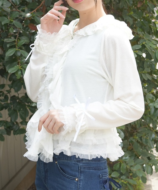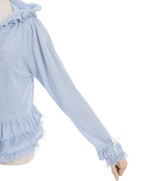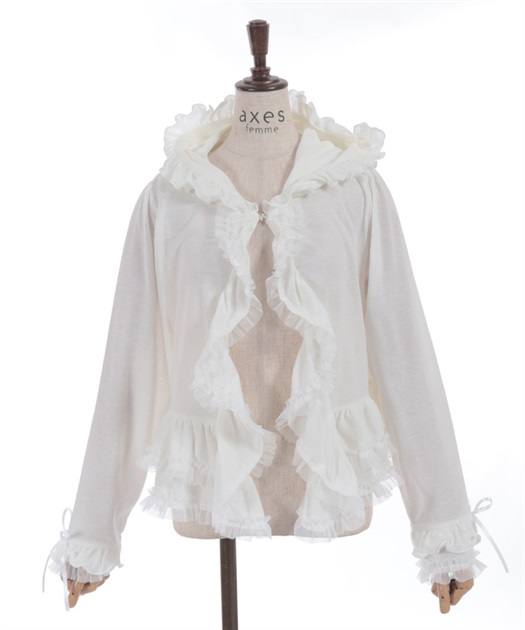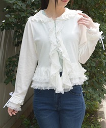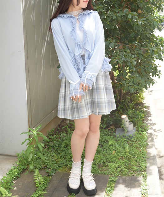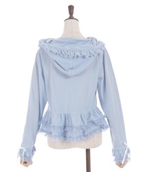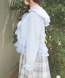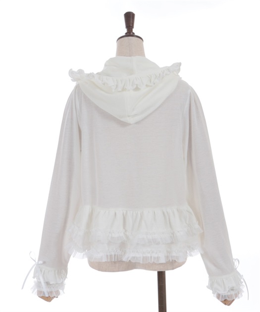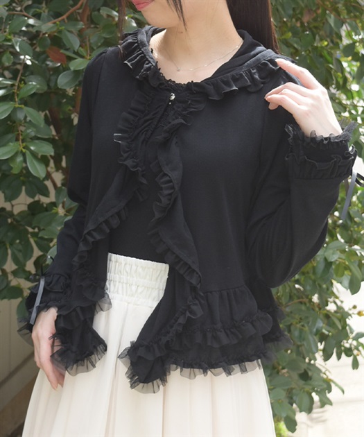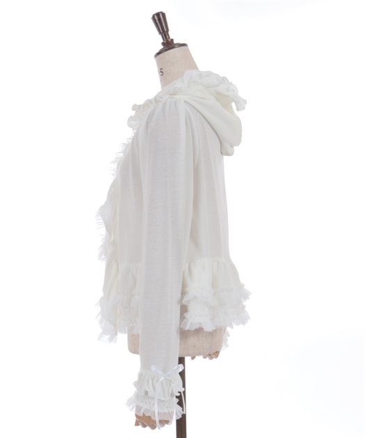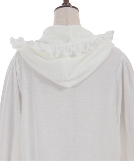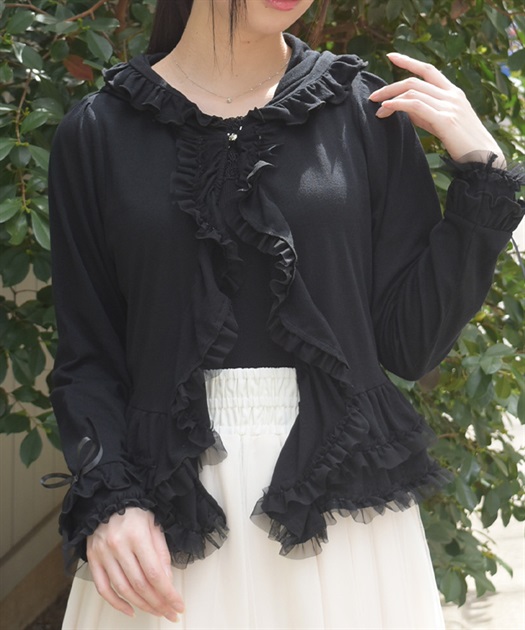 お肌にやさしいUVカット機能を備えながら、フリルを贅沢にあしらったディテールで印象的な一着に仕上げています。存在感のあるデザインでありながら、日常に取り入れやすいバランスが魅力です。軽やかな素材感でさらっと羽織れるのもポイント。