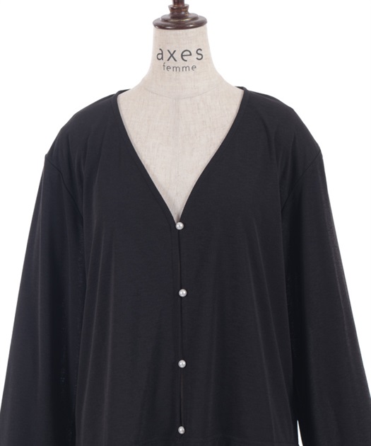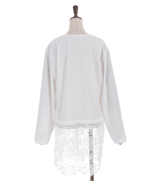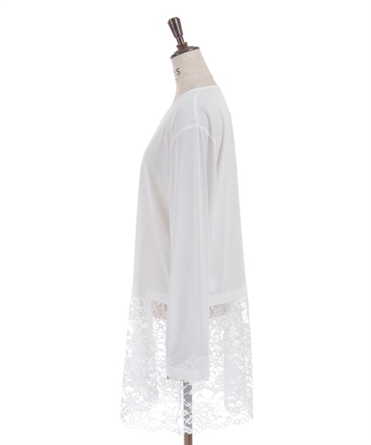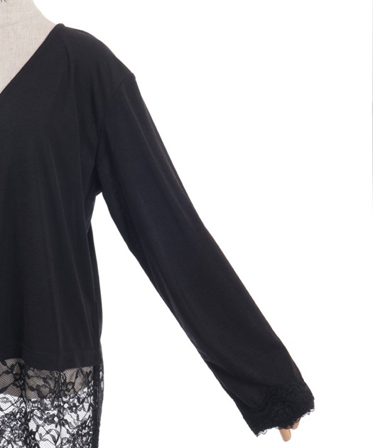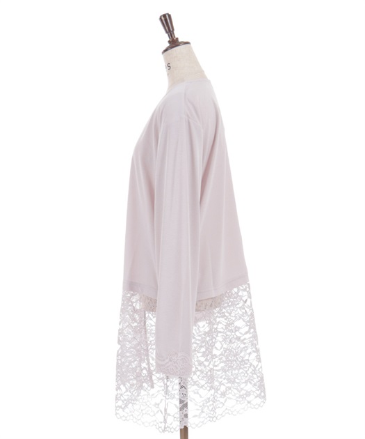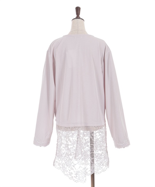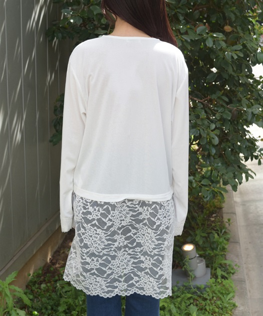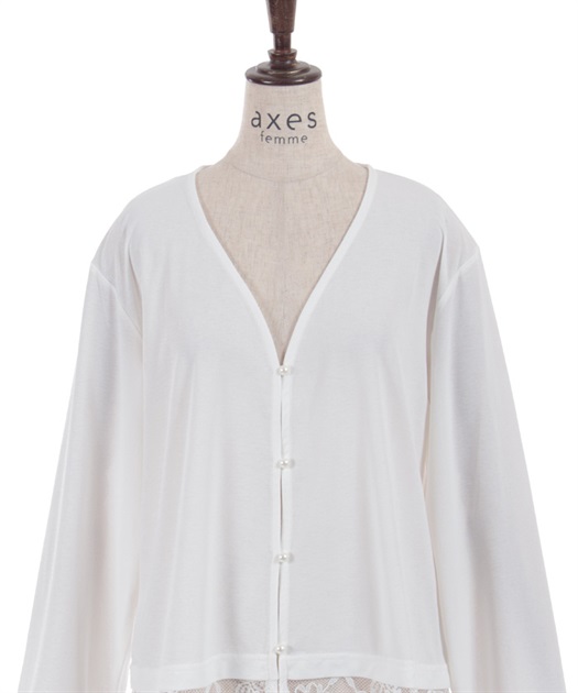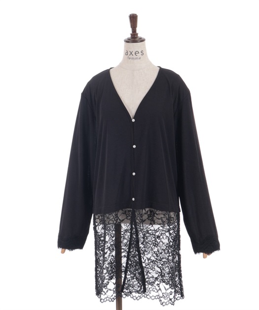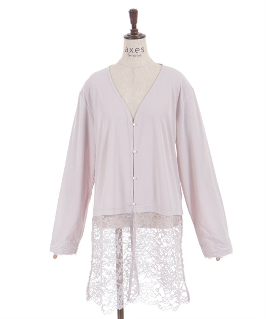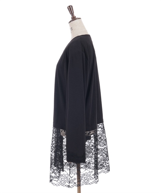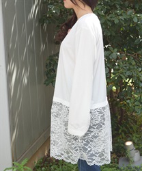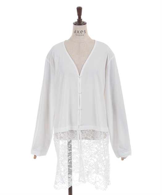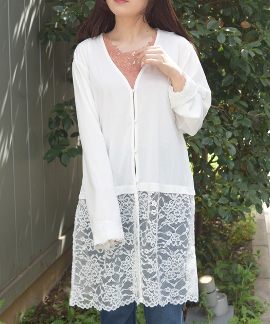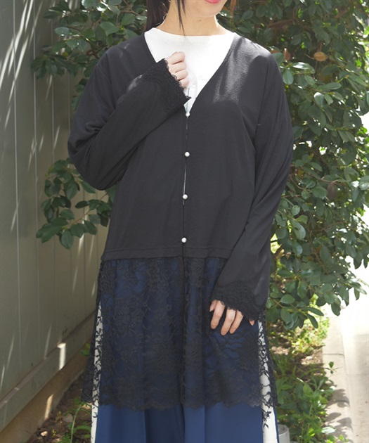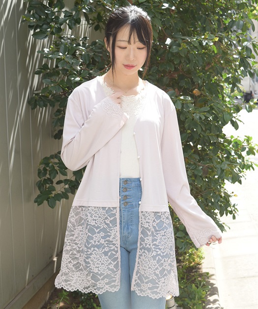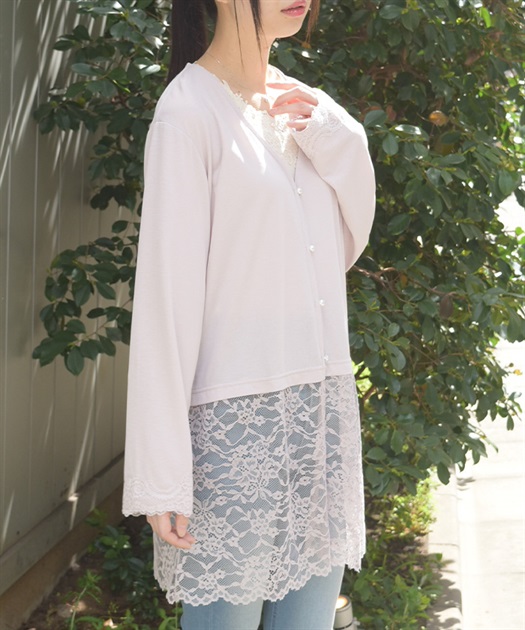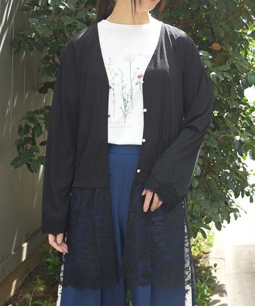 裾のレース使いが華やかななカットソーのカーディガンです。