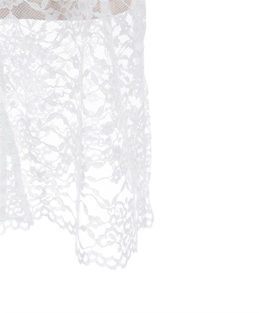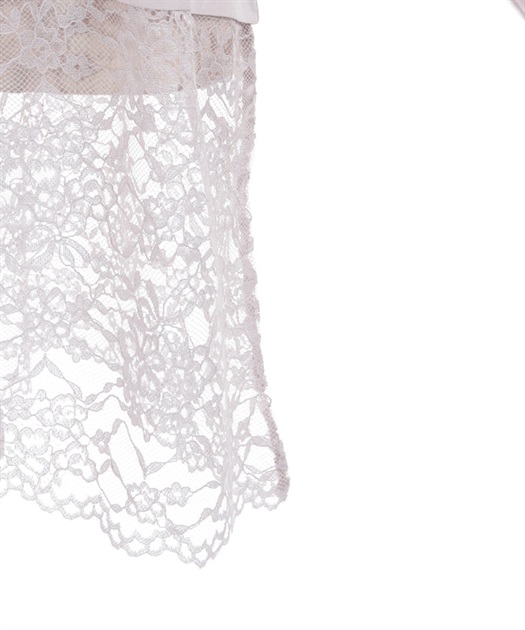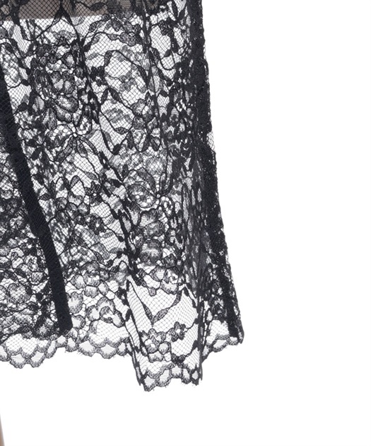 ぱっと目を惹く、スカラップのフラワーレースで大胆に大きく切り替えたデザイン。
