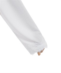 袖口にはストレッチのレーステープをあしらい、フェミニン感をプラス。