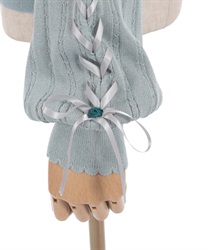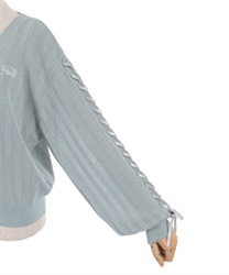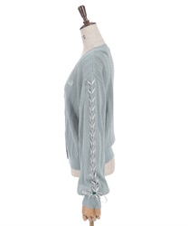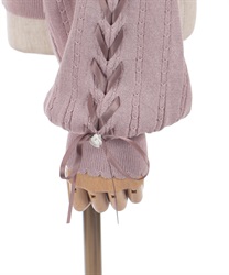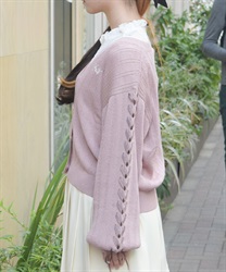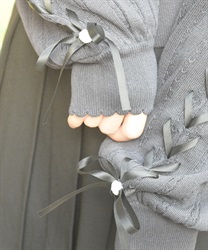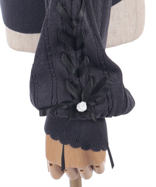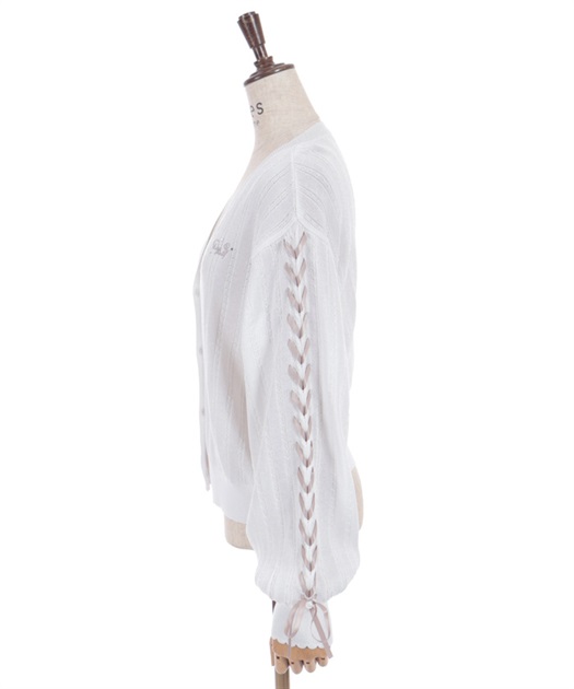 袖のサテンリボンを通したレースアップデザイン。