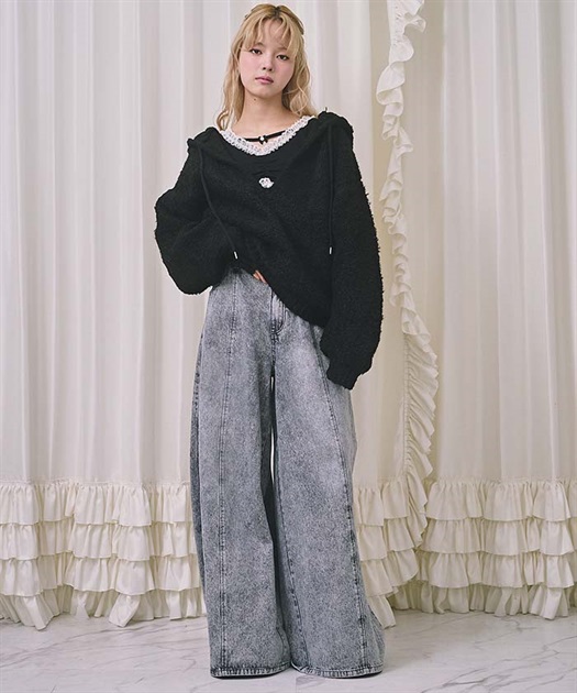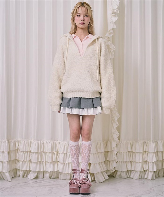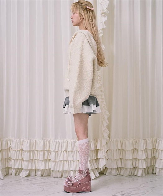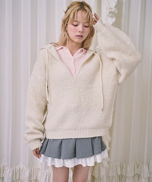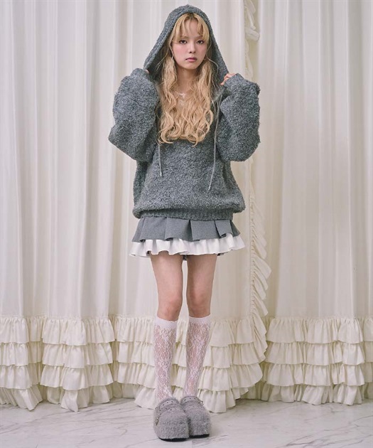 包まれる様なゆったりしたシルエットが可愛いフーディ。