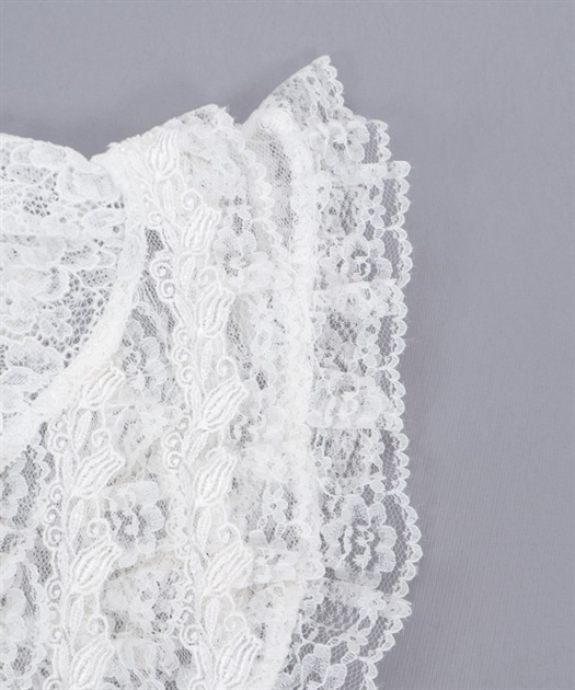 ジャケットを羽織れば、まるでレースブラウスを着ているかのような華やかな印象に。