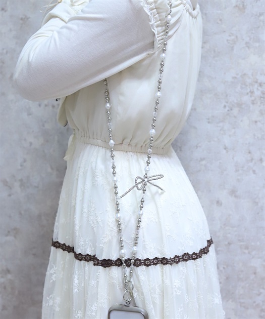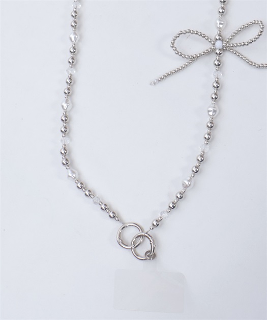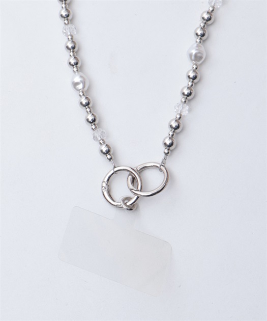 【アイテム説明】つやっとしたシルバーアクセサリーのようなマルチストラップ。スマートフォンに挟めるコネクターがセットになっています。【素材】裏地 なし透け感なし伸縮性なし