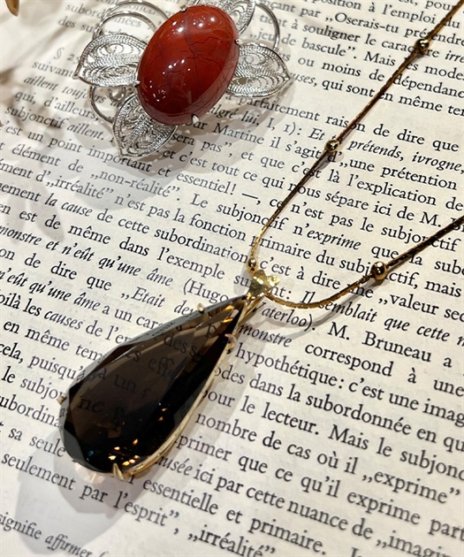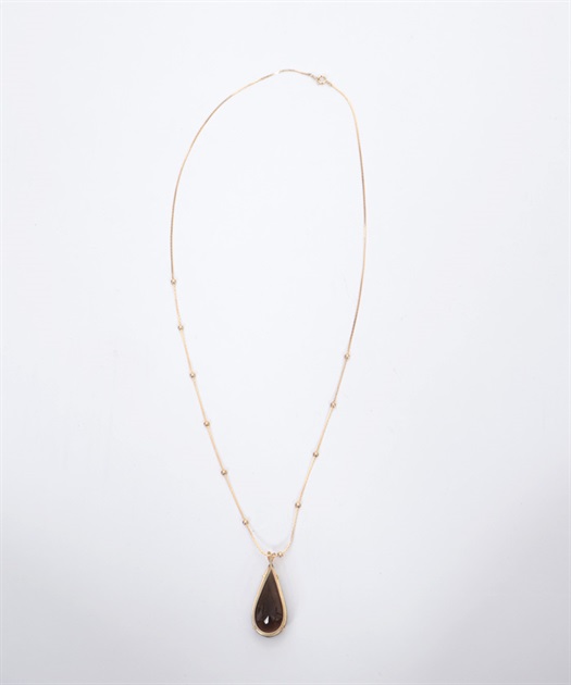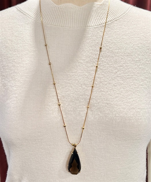 存在感抜群のドロップ型ストーンが揺れるネックレスです。