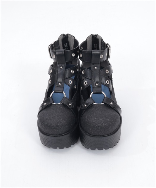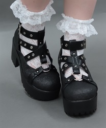 黒いグリッターを使用したパンプスです。
