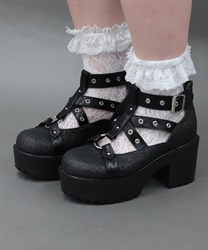 ベルトデザインヒールパンプス
