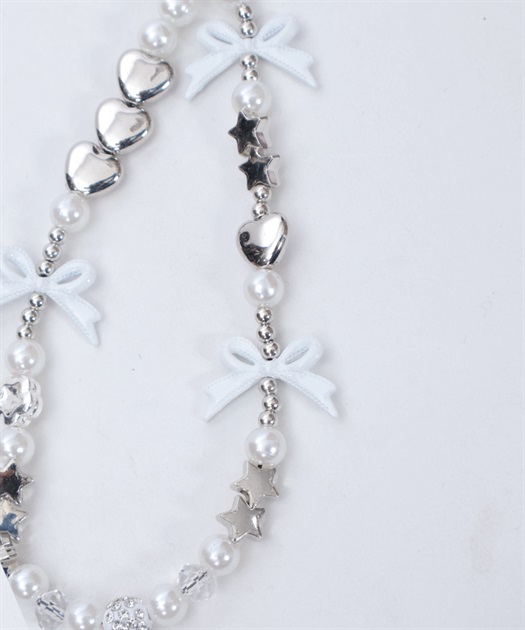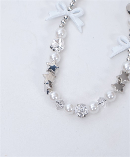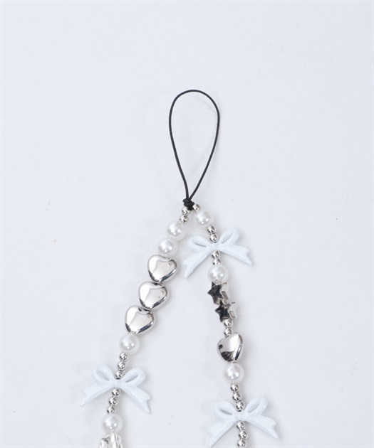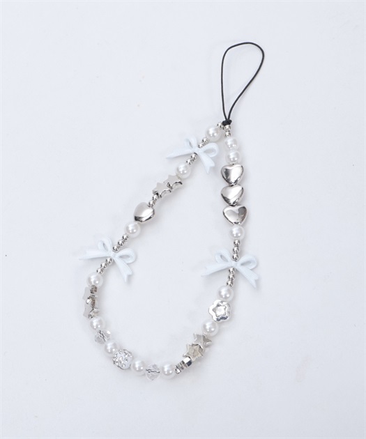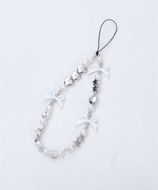 【アイテム説明】リボンビーズがアクセントのストラップ。バッグやスマートフォン、デジカメにつけてアクセントになるチャームです。【素材】裏地 なし透け感なし伸縮性なし
