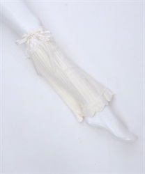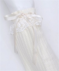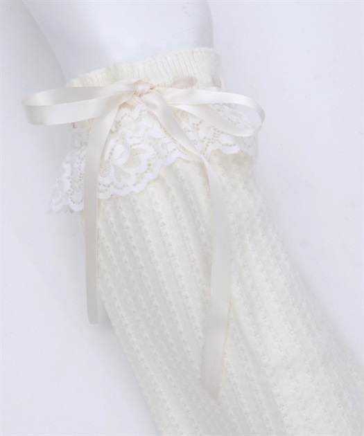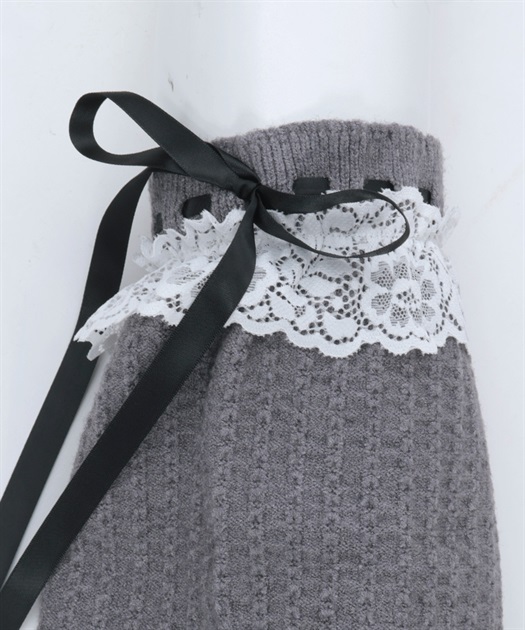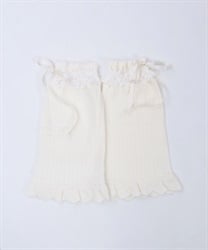 裾のフリルと繊細なレースがフェミニンな印象をプラス。上端部分にはリボンが通っており、好みの位置でしぼって着用できるデザインです。さりげない可愛らしさと機能性を兼ね備えたアイテム。