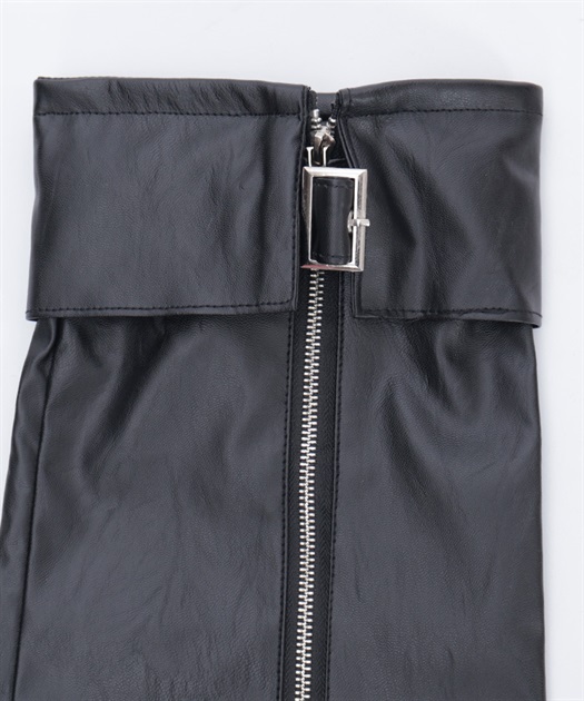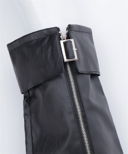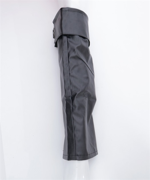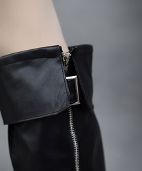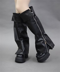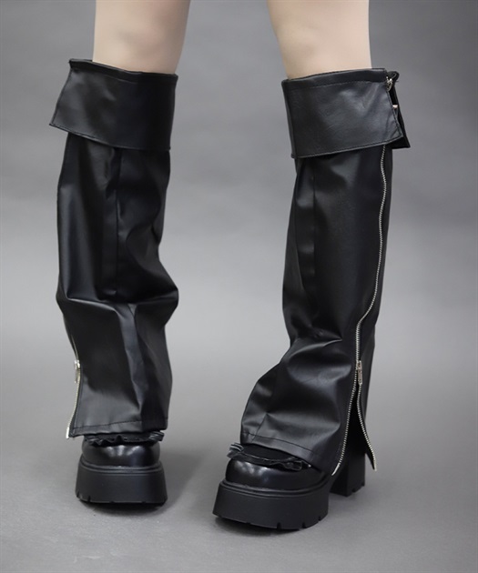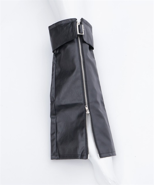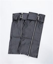 ベルトやファスナーデザインでハードに仕上げたレッグカバーです。