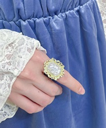 天使の羽が舞う様子をオリジナルの金型に起こし、封入モチーフにあしらったフリーリングです。