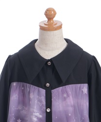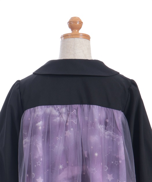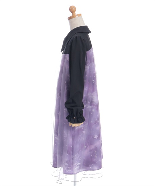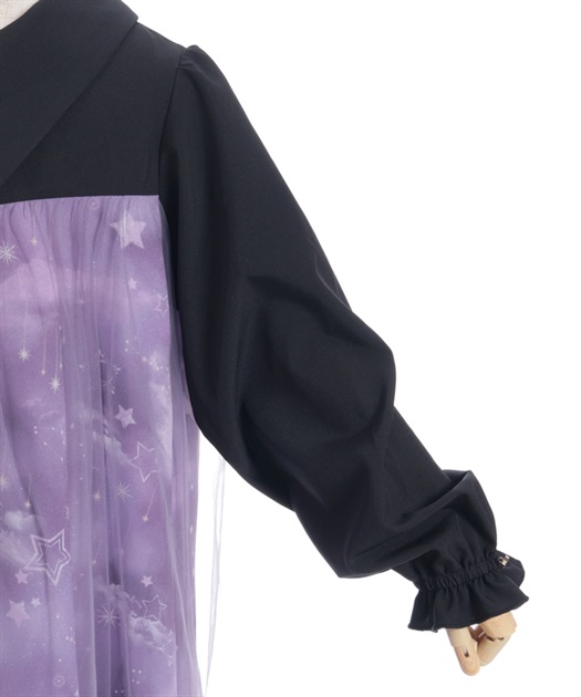 【素材】さらっと軽やかな布帛素材に星空プリントを重ね、柔らかなチュールでドリーミーな仕上がりに。お手入れが簡単なので普段使いも◎。