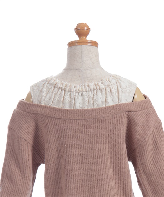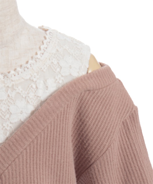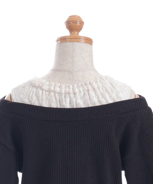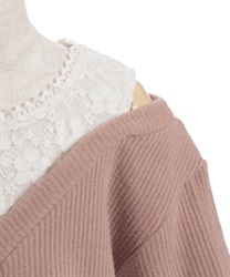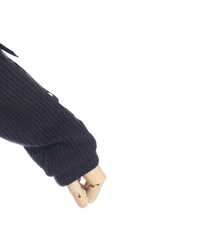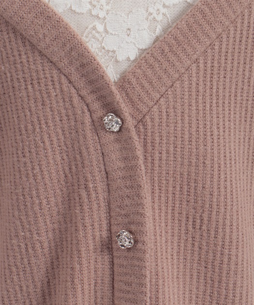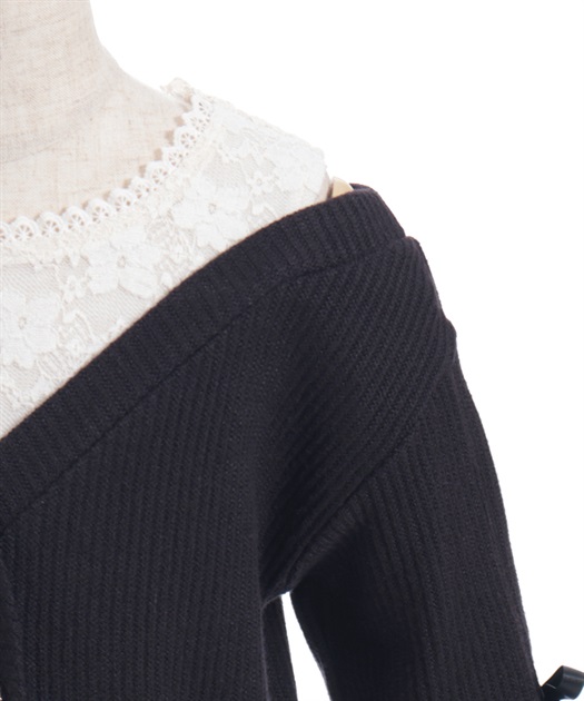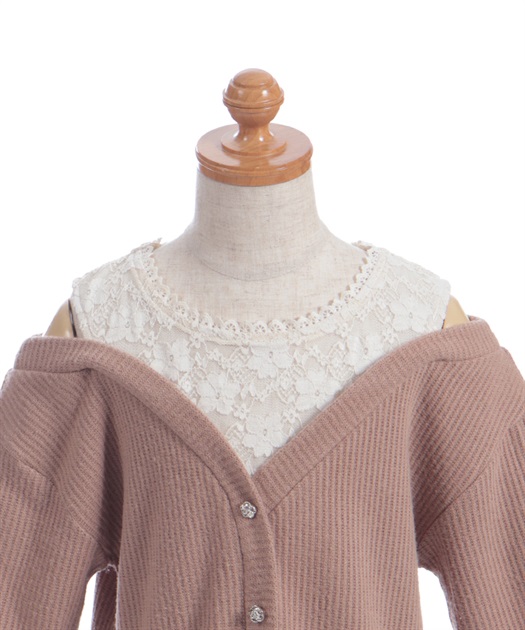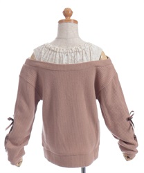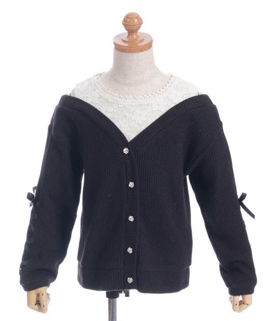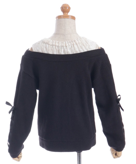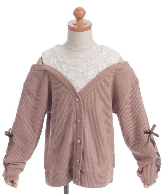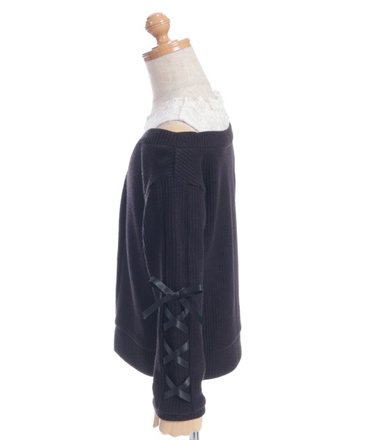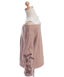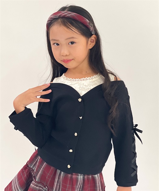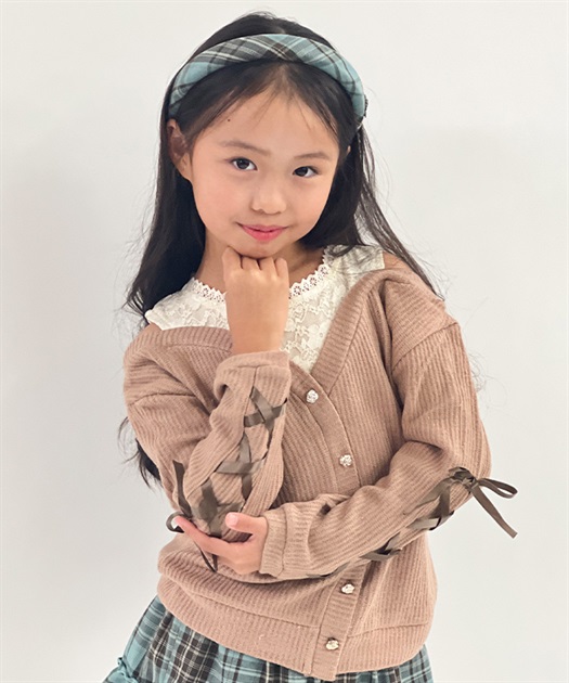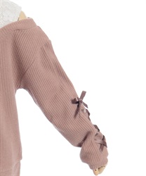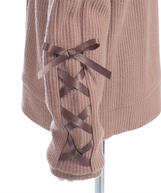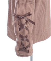 袖口に縫い留められたレースアップリボンがさりげないアクセントとなり、シンプルながらも愛らしさを感じるデザインです。