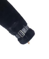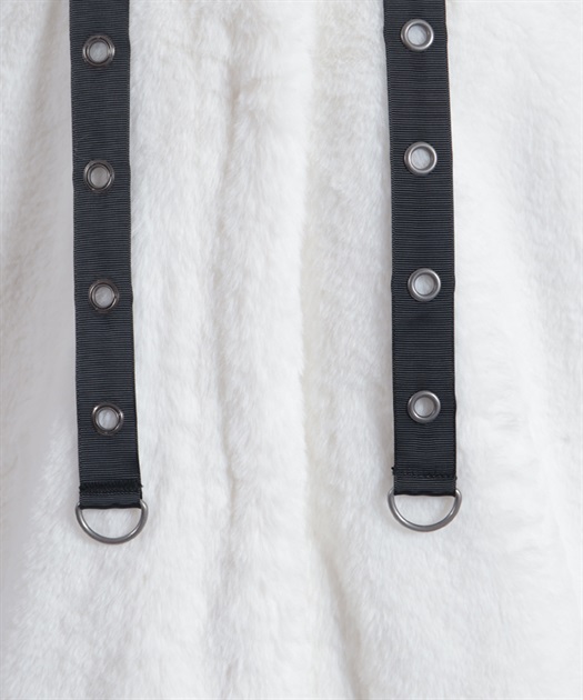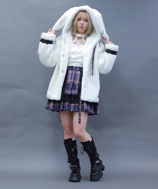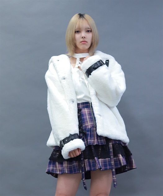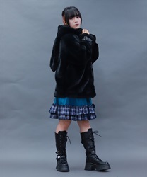 ボリュームのあるファーコートにはミニ丈ボトムがおすすめです。