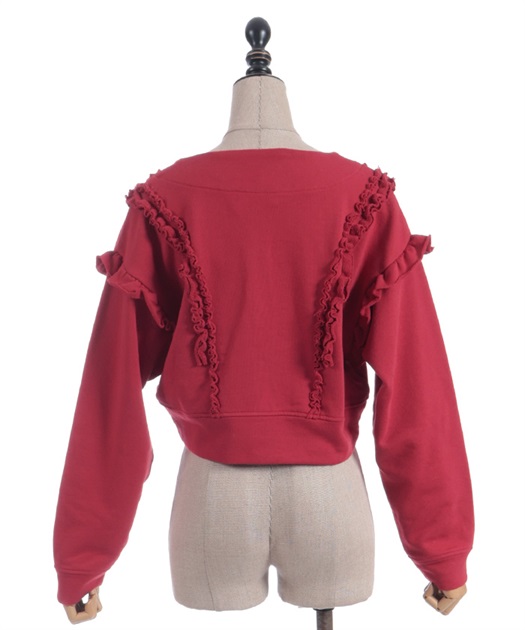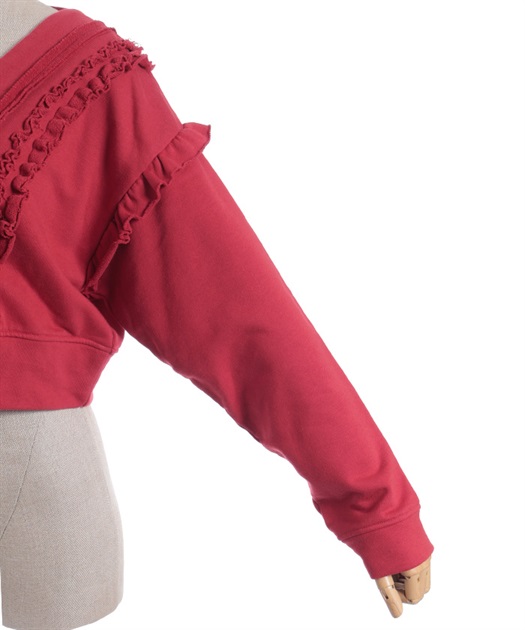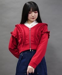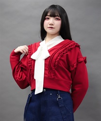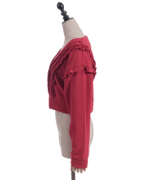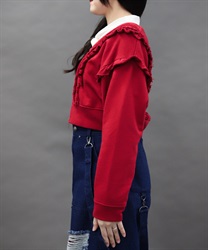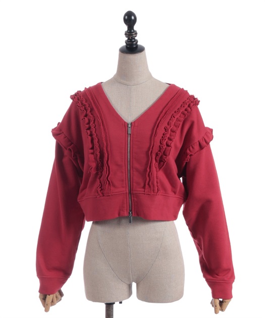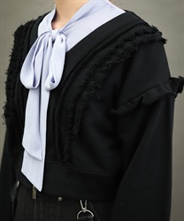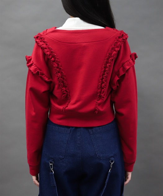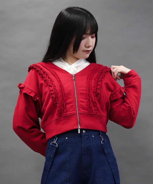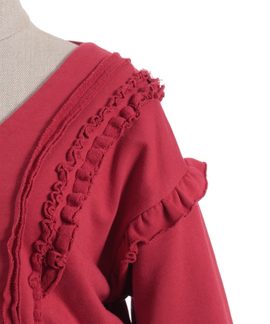 ダメージ加工の入ったフリルが辛口なアクセントになっています。