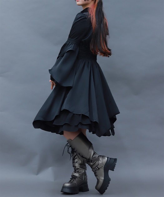 袖や裾のフレアが動くたびに揺らめく妖しげなワンピースが登場です。