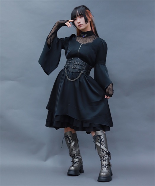 こちらはレースアップコルセットベルトと合わせたコーデもおすすめです。