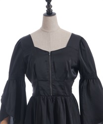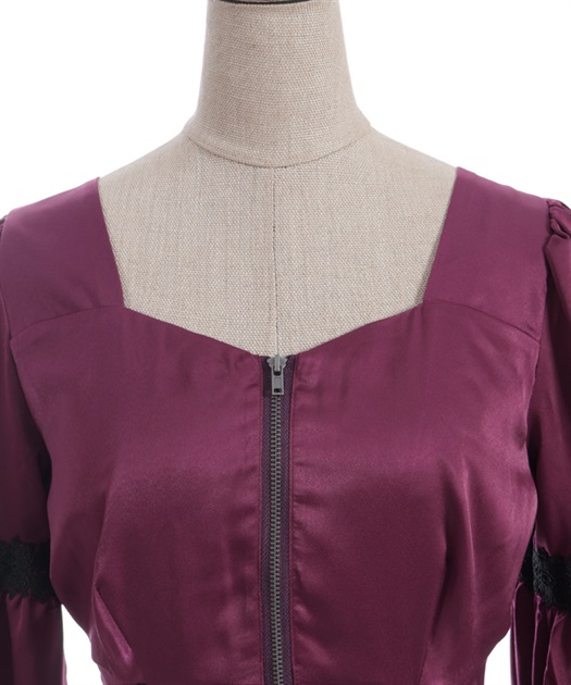 デコルテを美しく魅せるラインから続くファスナーでアクセントを加えています。