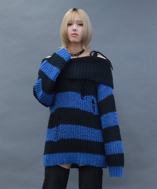 パンクなテイストを取り入れたボーダーニットの登場です。