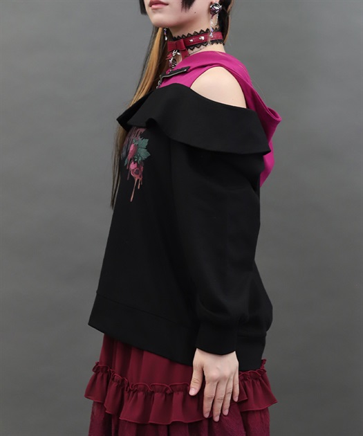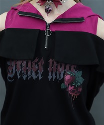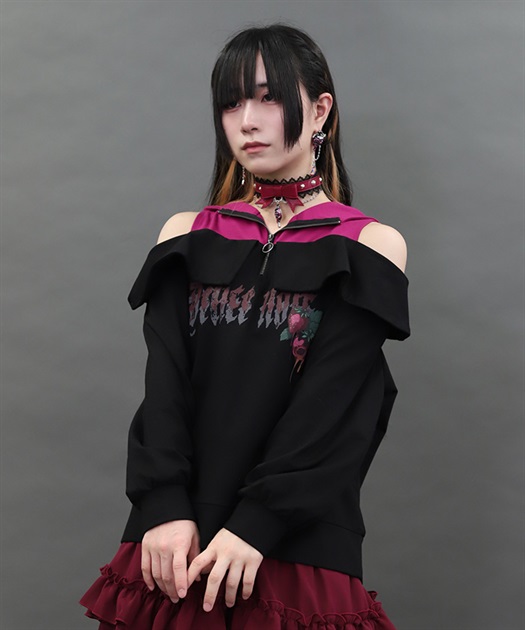 裾からフリルを覗かせたガーリーパンクなコーデに仕上がります!