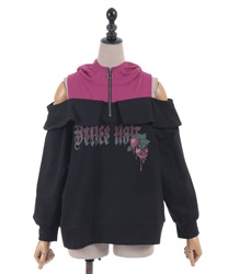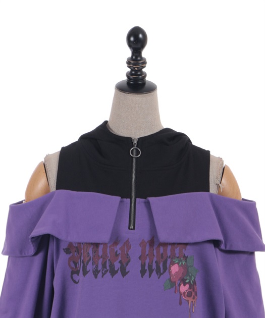胸元にあしらったプリントが目を惹くロングプルオーバーです。