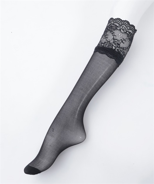 履き口にレースをあしらったシアーソックスです。