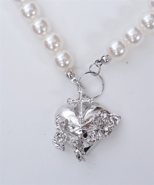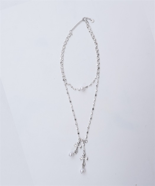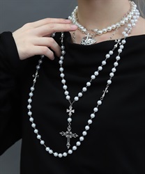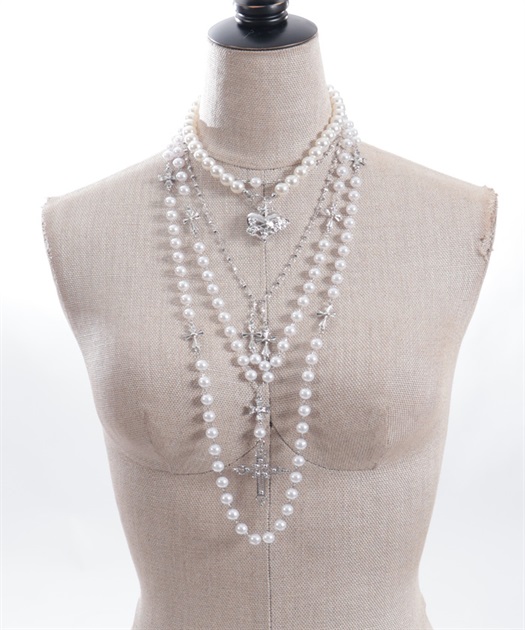 ハートやクロスのチャームが目を惹く4連ネックレスです。