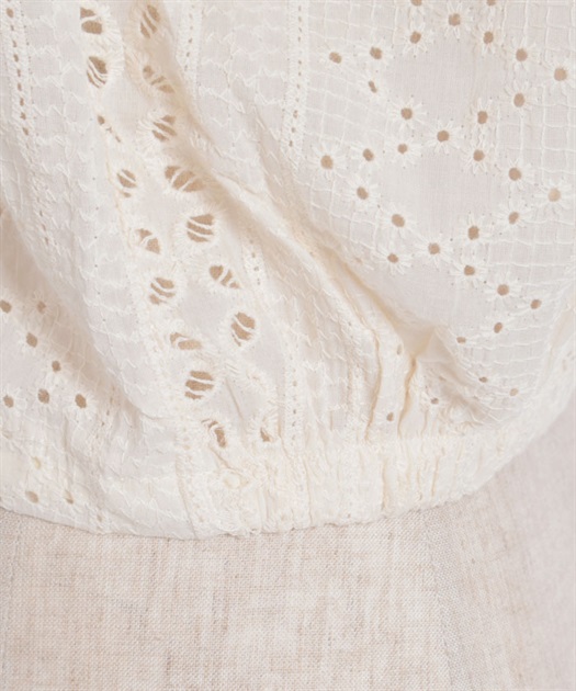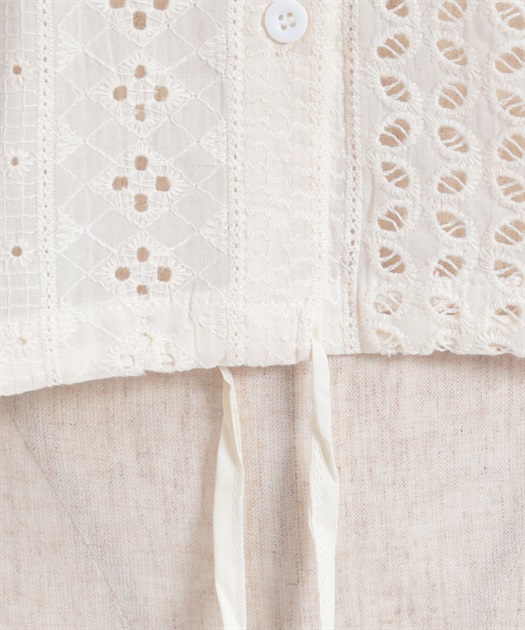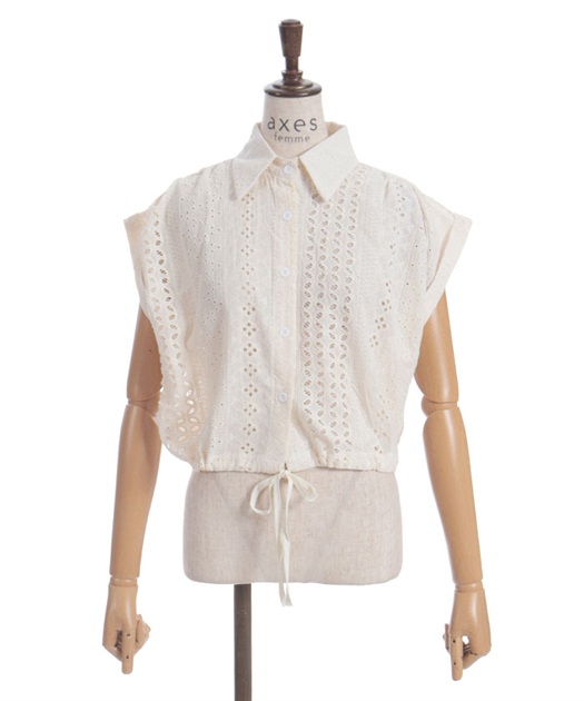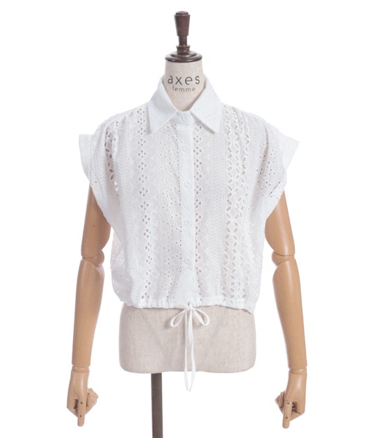 ハイウエストのワイドパンツと合わせて、リラックス感のある大人カジュアルにも、同系色のレースアイテムと組み合わせて、統一感のある上級フェミニンコーデにも◎