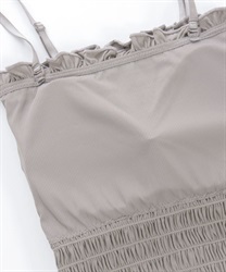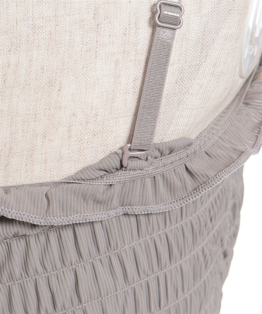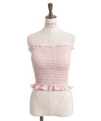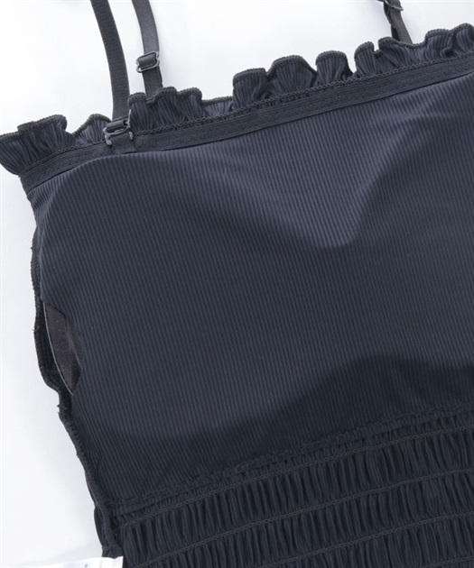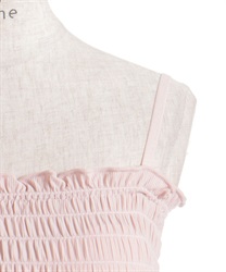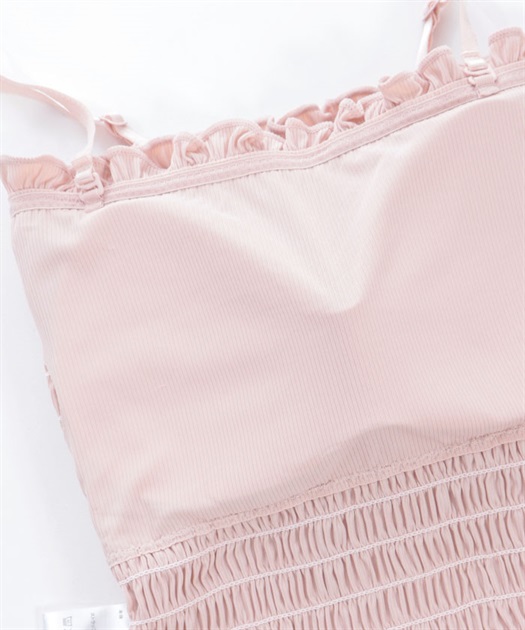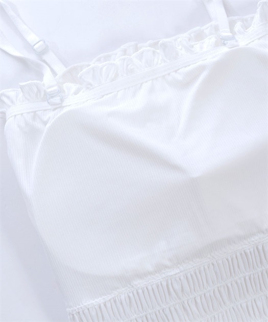 ふんわりフィットするシャーリングデザインで、ラクなのに女性らしさも叶えるブラトップ。夏~秋のインナーとして快適に着られます◎