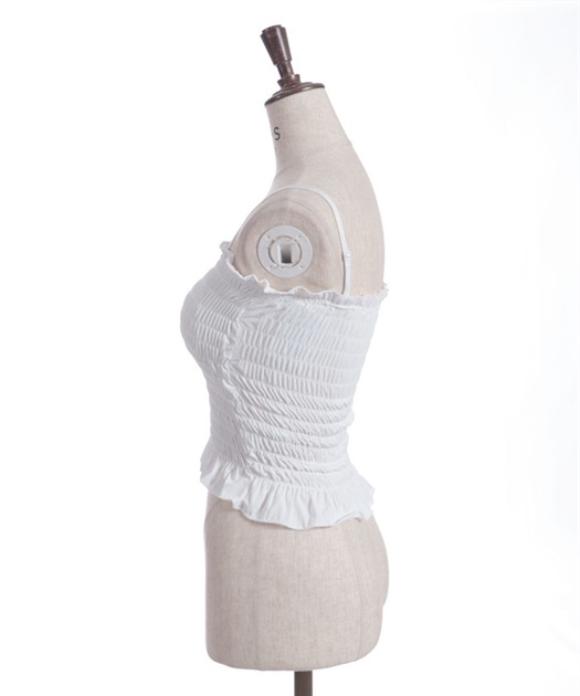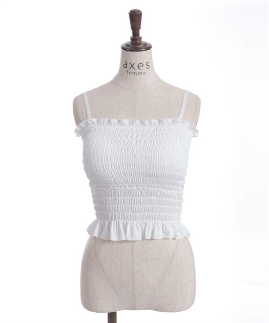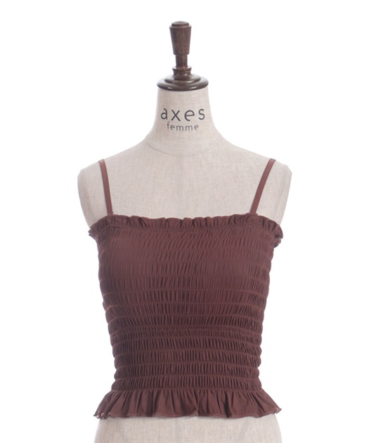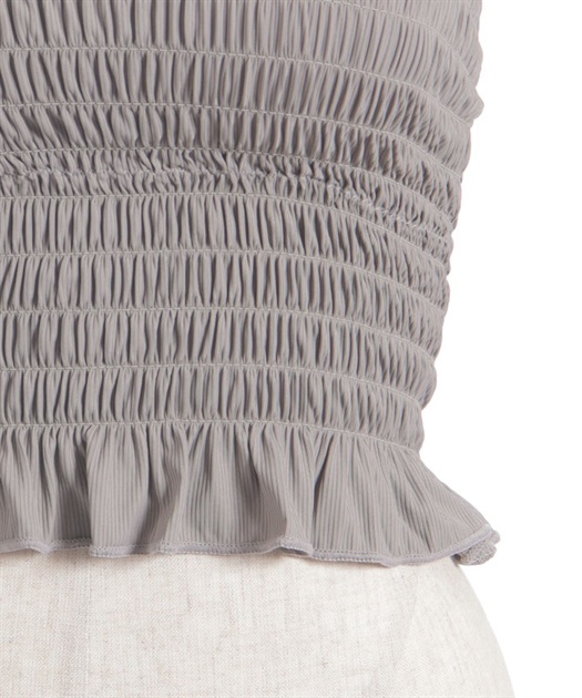 1枚あると重宝する、着回し抜群のシャーリングブラトップ