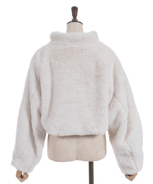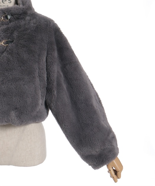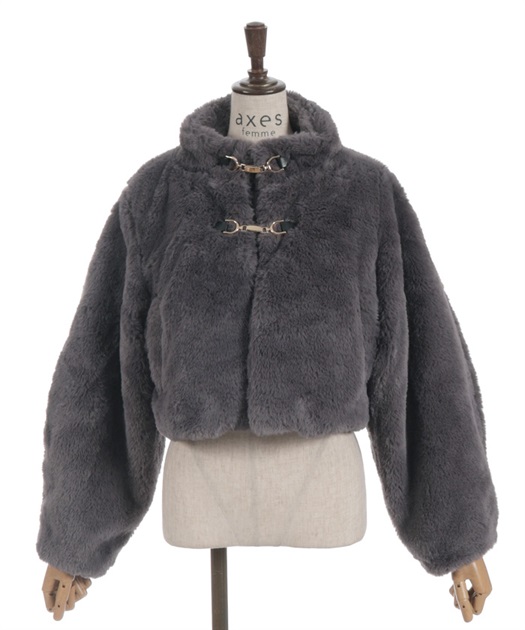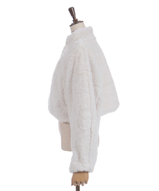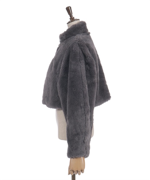 ふんわりとしたファーの質感が季節感を高め、羽織るだけで華やかな印象が叶うショートアウター。