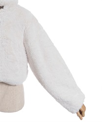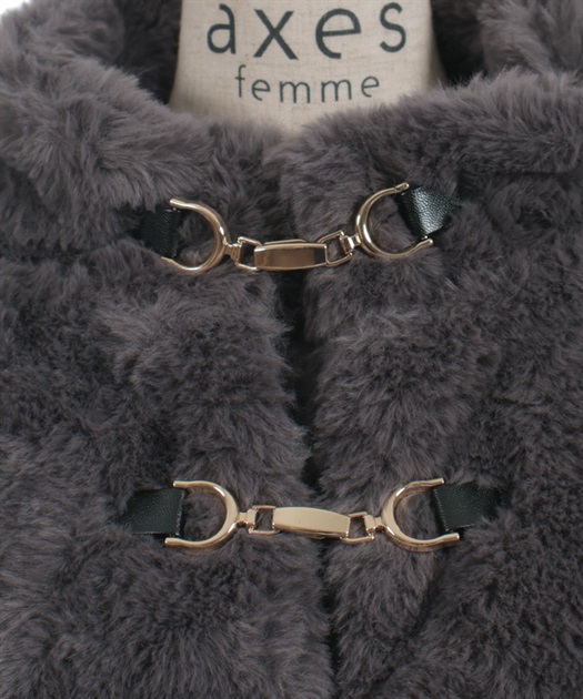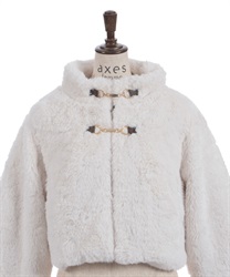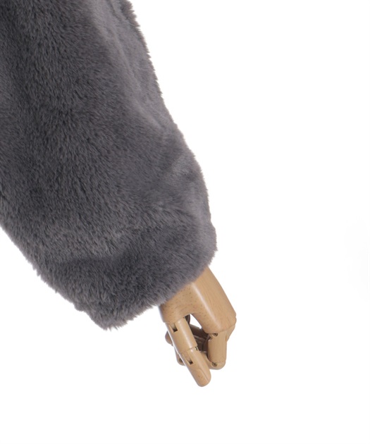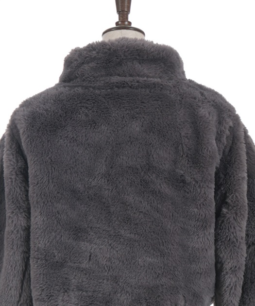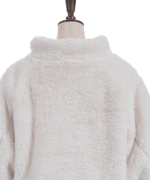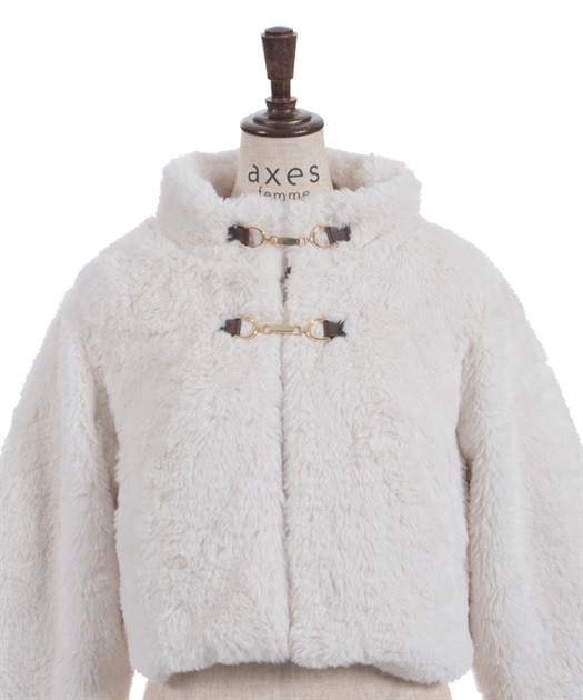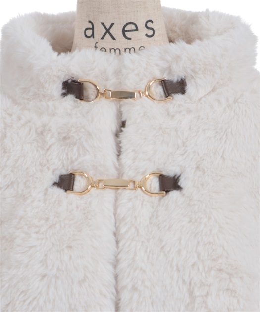 やわらかな毛並みが上品に映え、首元まであたたかく包み込むようなシルエットに仕上げています。フロントのビットがアクセントになり、甘さの中にきちんと感も添えてくれる一着です。