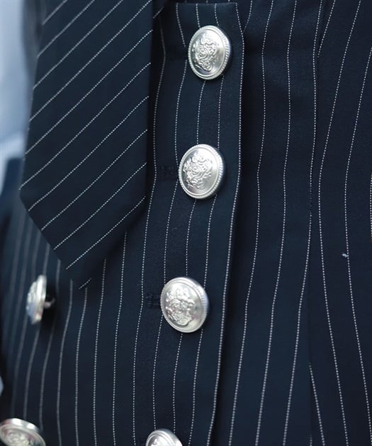 ダブル釦をあしらい、シルバーやゴールドのメッキカラーがポイントになっています。