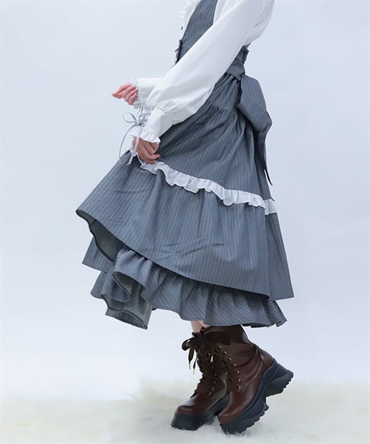 ローウエストでウエスト周りを美しく見せ、クラシカルなシルエットを演出します。