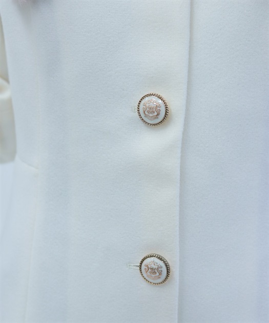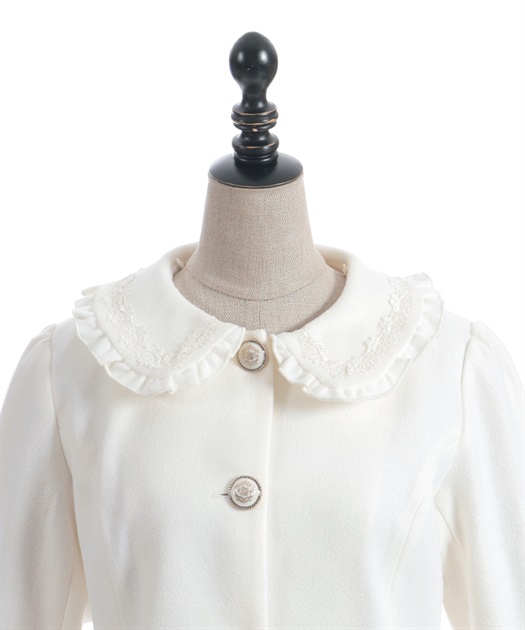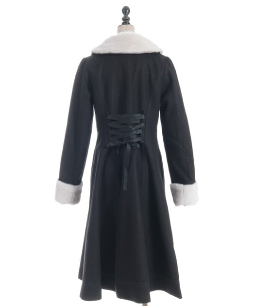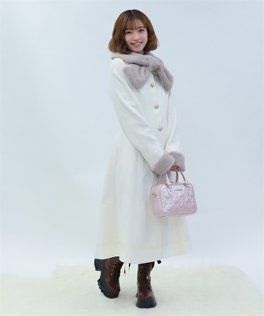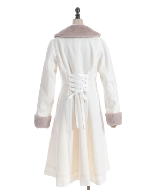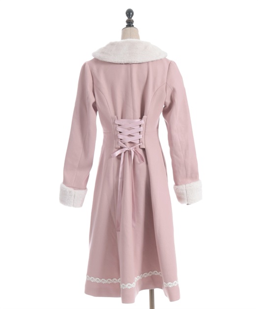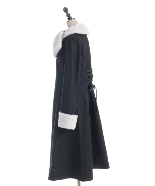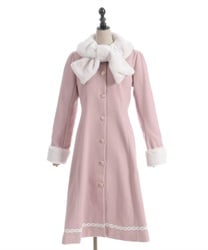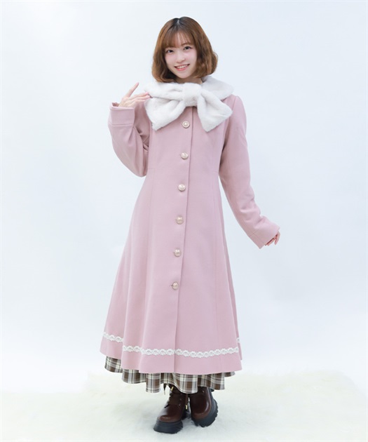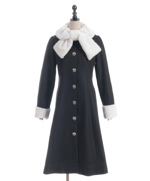リボンデザインのファーティペットがポイントになったロングコートです。