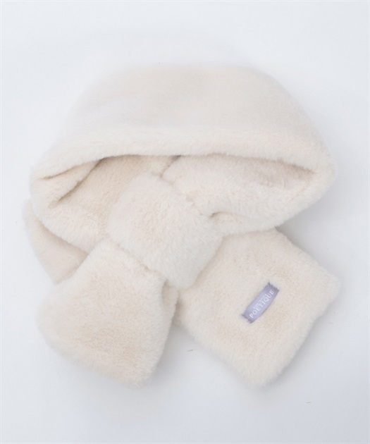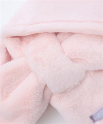 小さいベロアリボンを手付け装飾にあしらった、リボンの形のファーマフラーです。