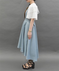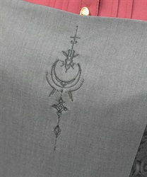 胸元に月モチーフの刺繍が入ったデザインです。肩紐は長さ調節が可能になっております。後ろスカートが少し長い、フィッシュテールデザインでスタイリッシュな印象に。