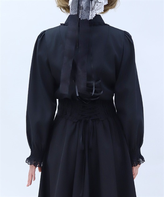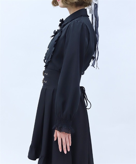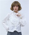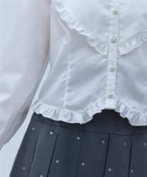 裾にフリルをあしらい、トップスアウトで着てバランスの良い丈感です。