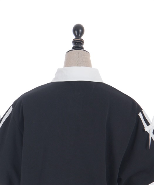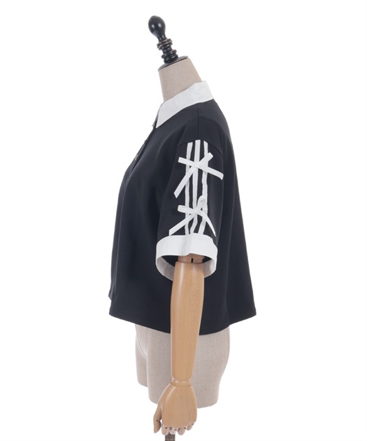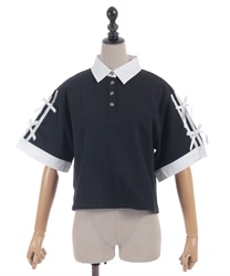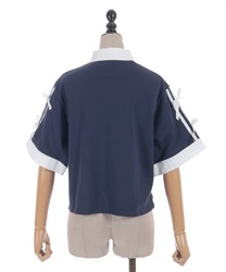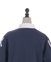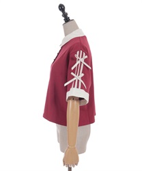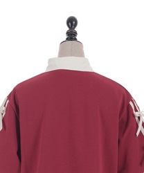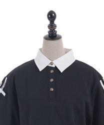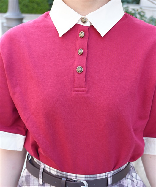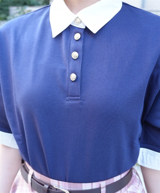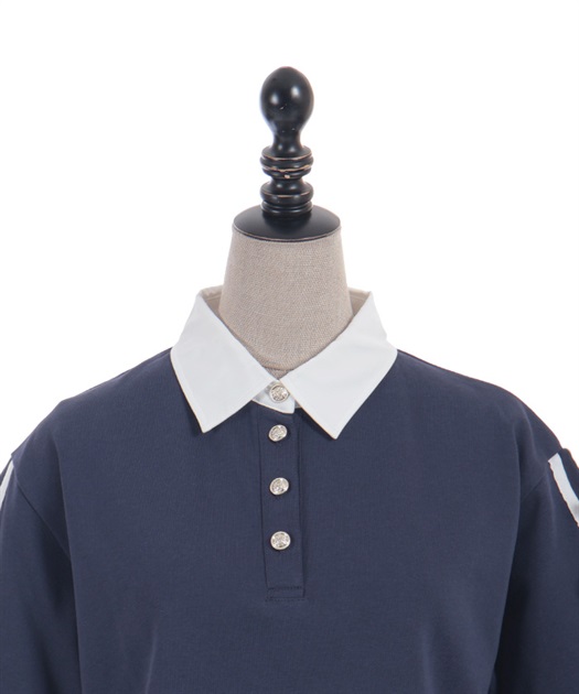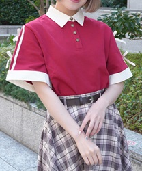 バイカラーの配色がプレッピーな、衿付きのプルオーバー