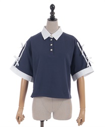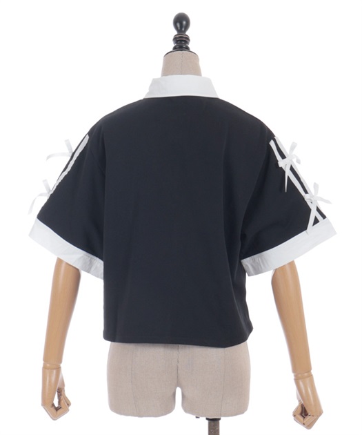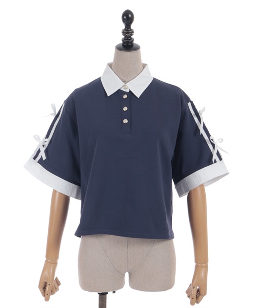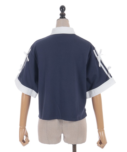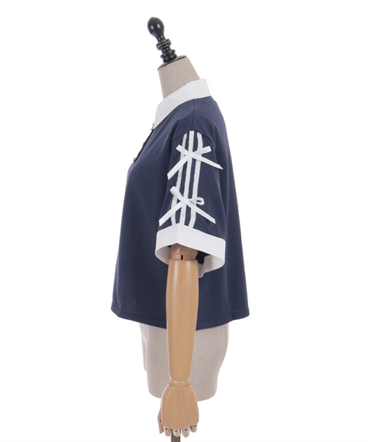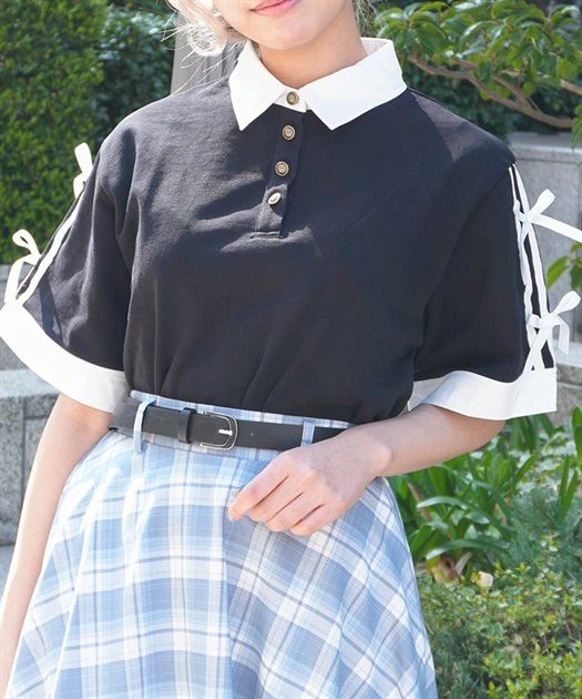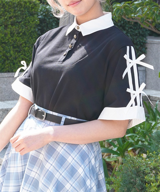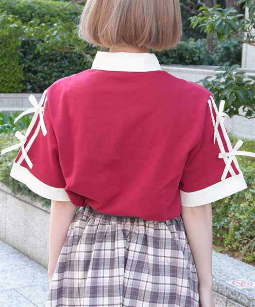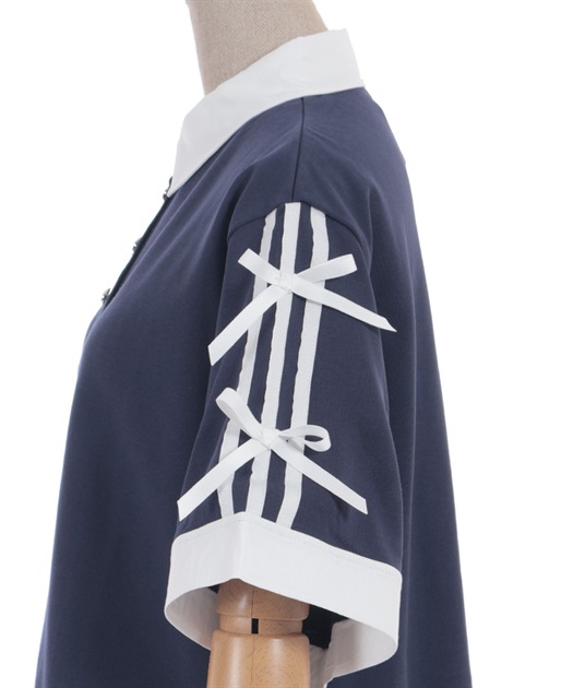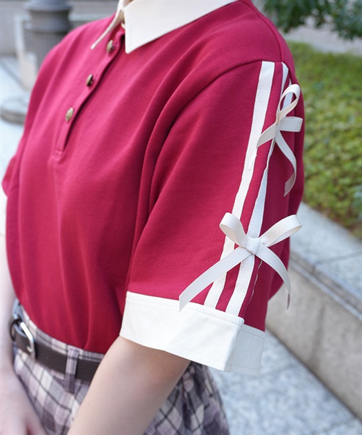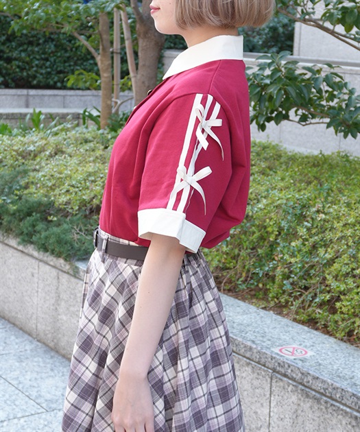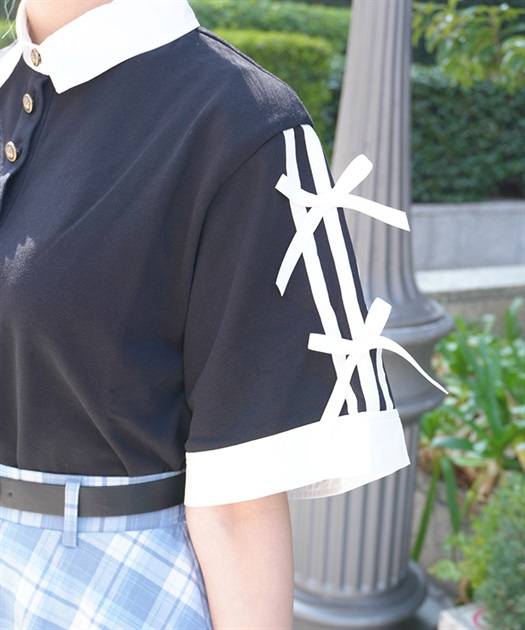 ライン使い&ダブルリボンがプレッピーな印象に。