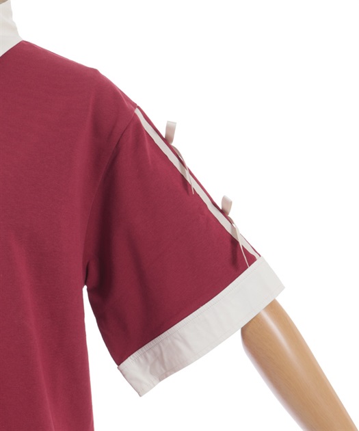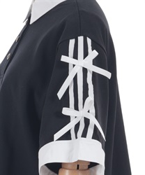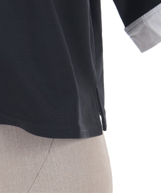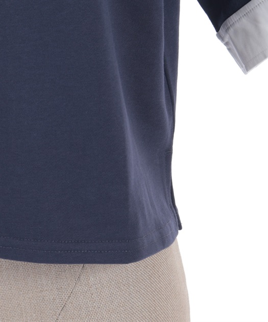 シャツ生地とカットソー生地を切り替えたバイカラーのプルオーバーです。