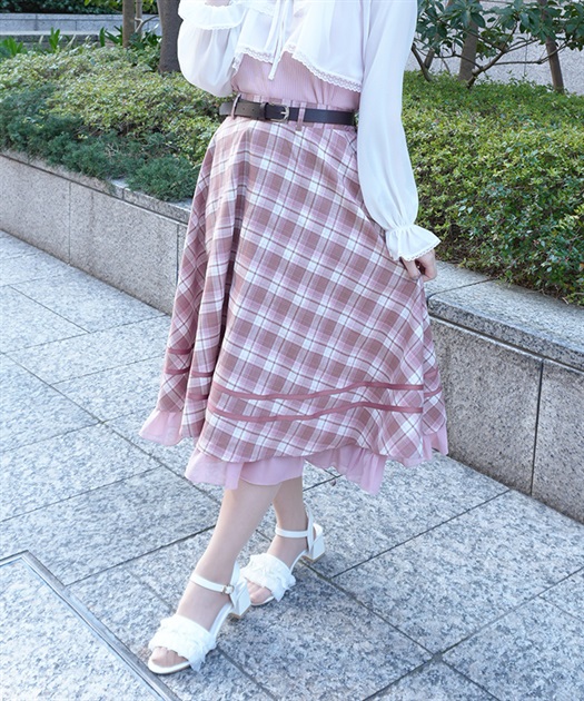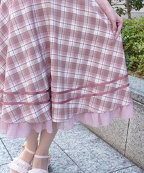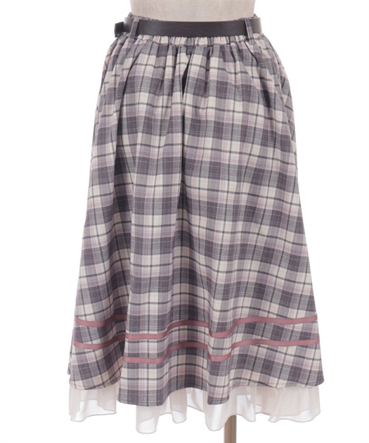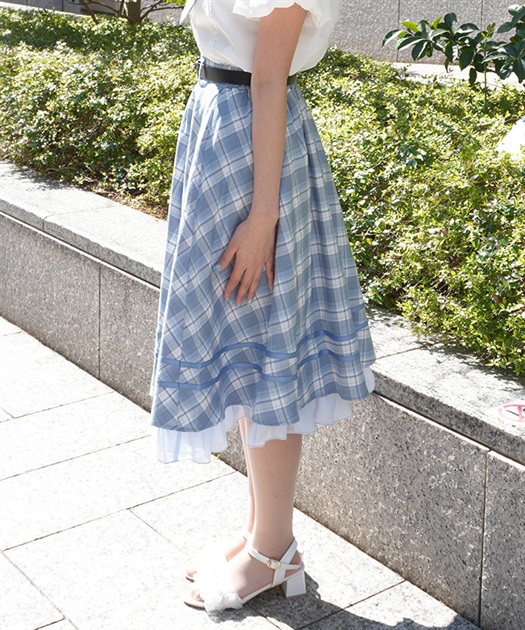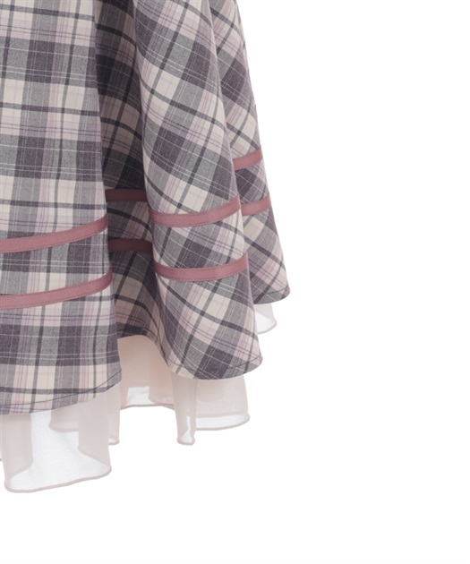 布量をたっぷり取ったカラーチェックのサーキュラースカートです。
