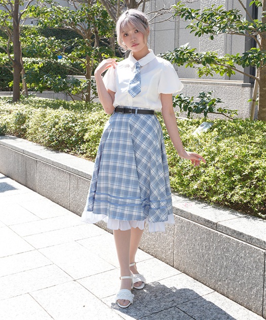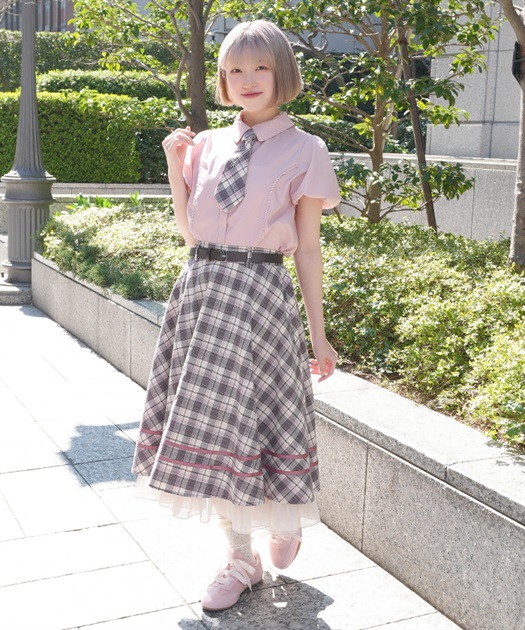 配色感のあるカラーチェックを使用した、生地連動のブラウス&スカートが登場