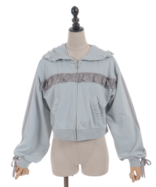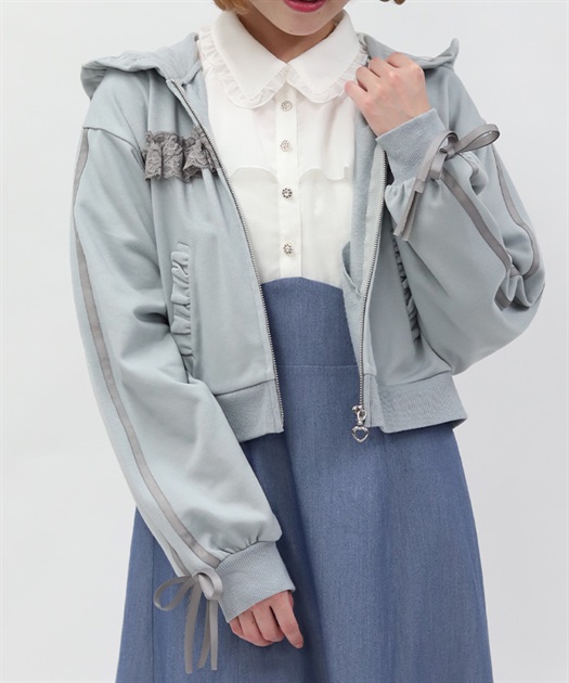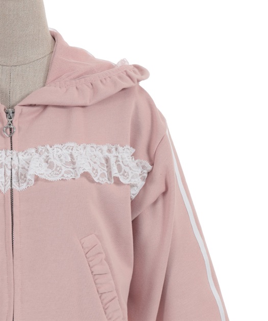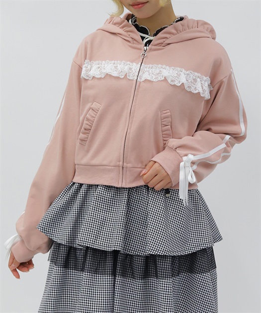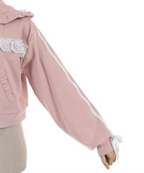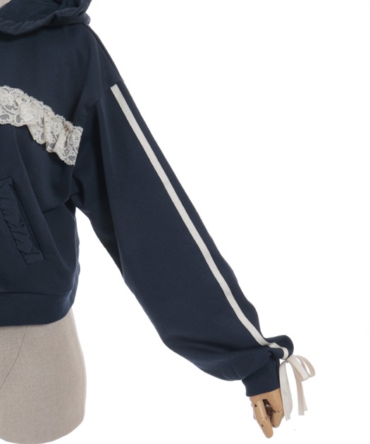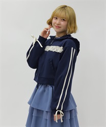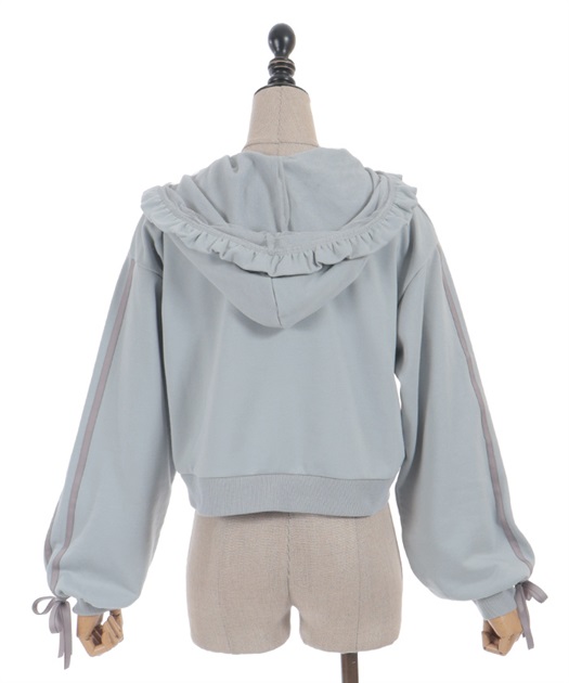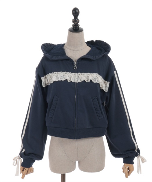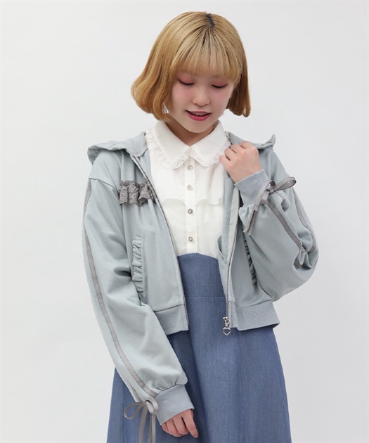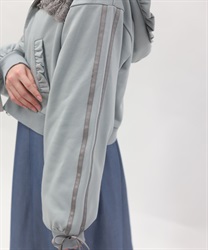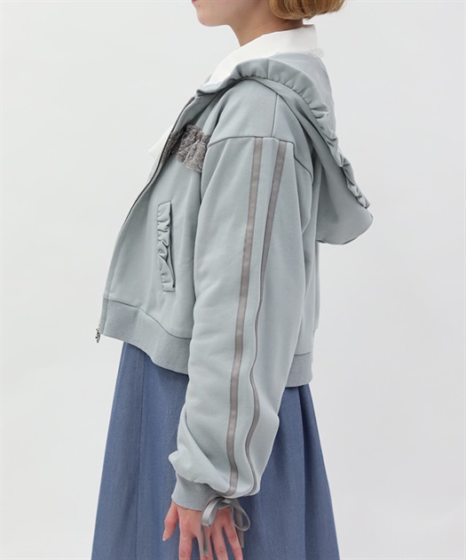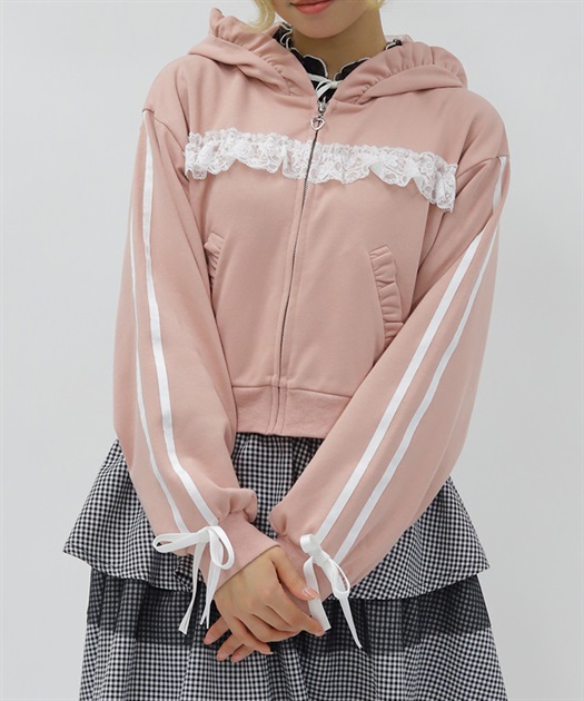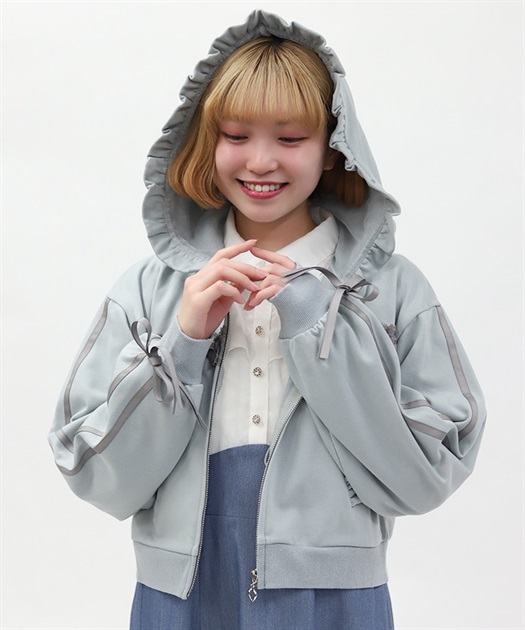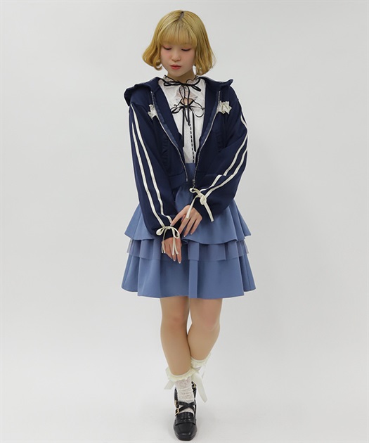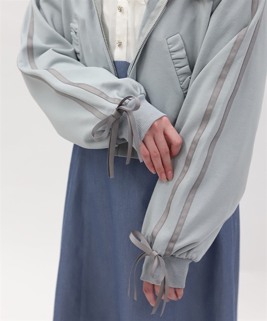 フリル使いがガーリーな印象を与えつつ、ライン使いがスポーティー要素をプラスします。