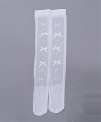 リボンやハートのモチーフ柄がガーリーなニーハイソックスです。