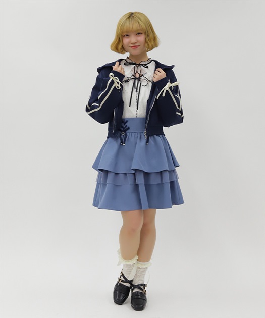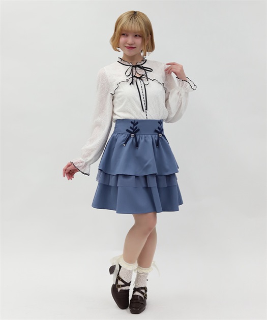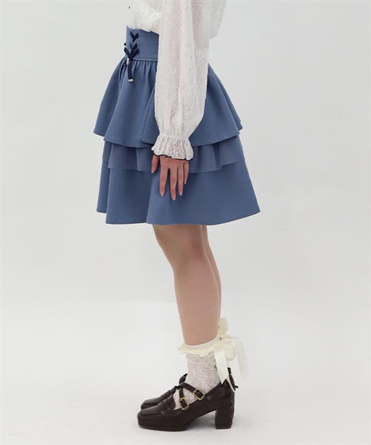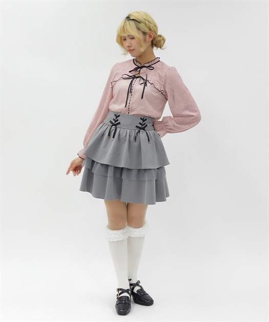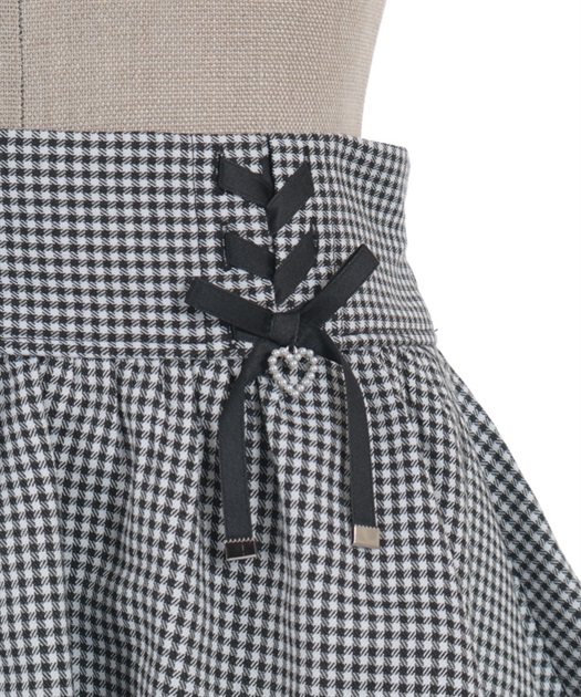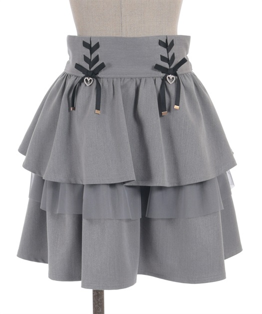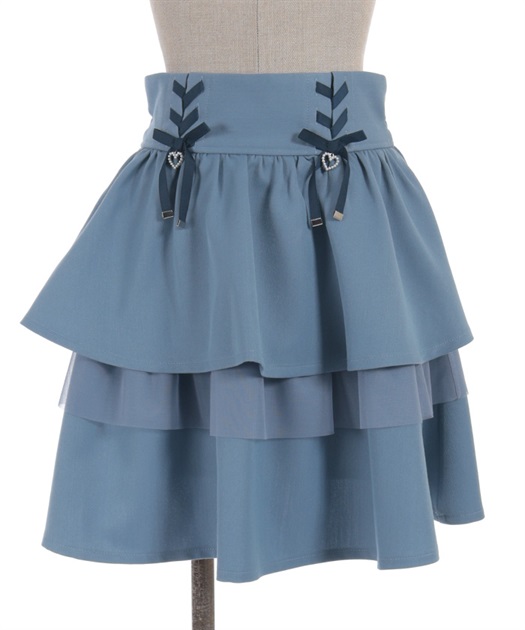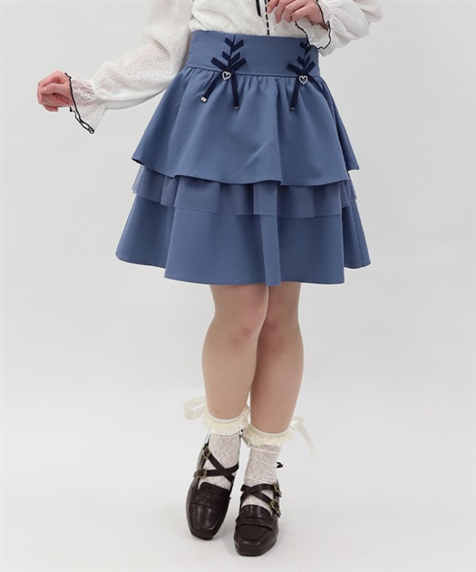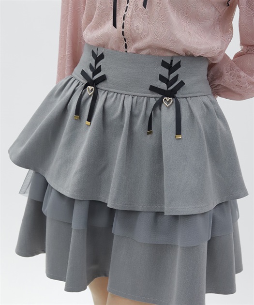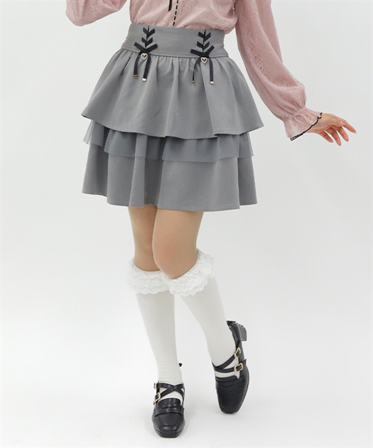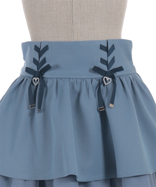 レースアップ+ハートのモチーフをあしらった、ウエストデザインがガーリーな印象をプラスします。