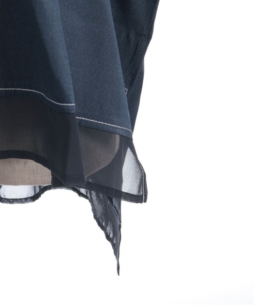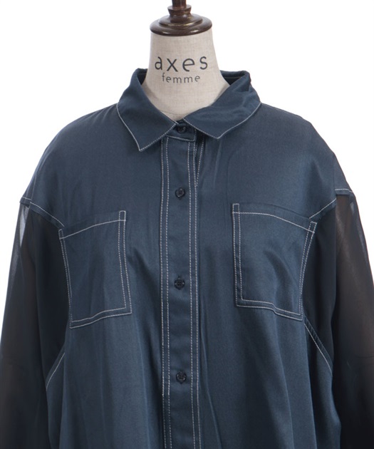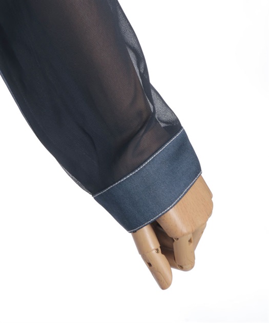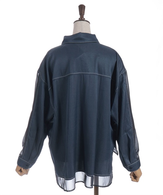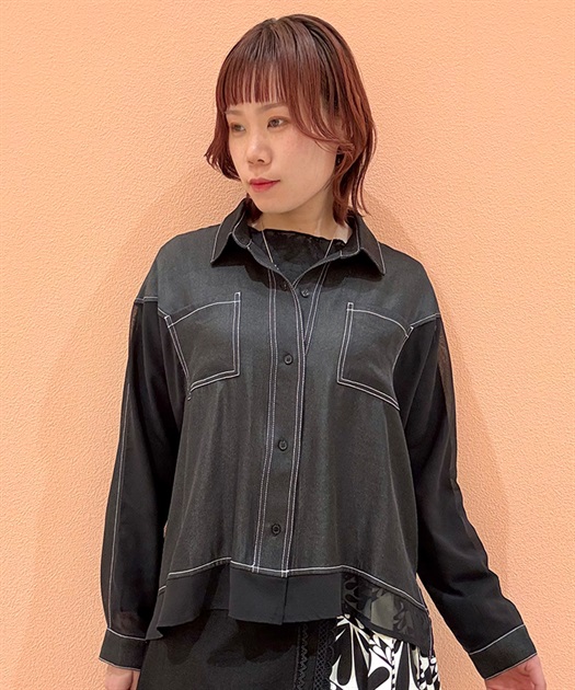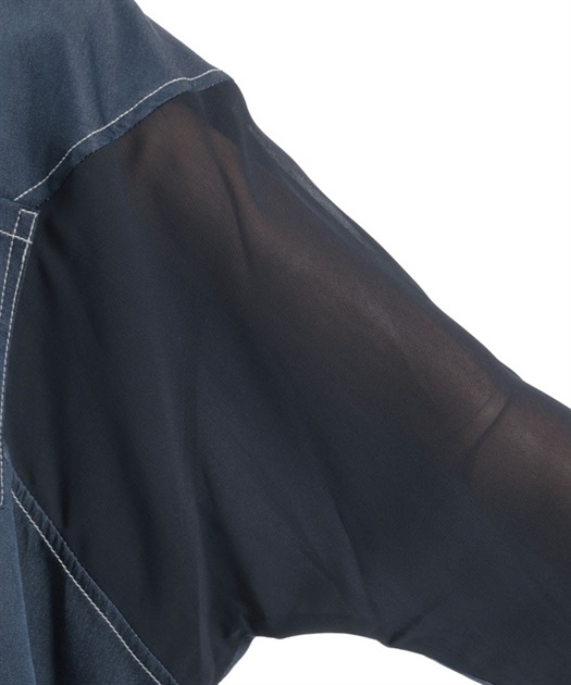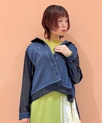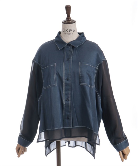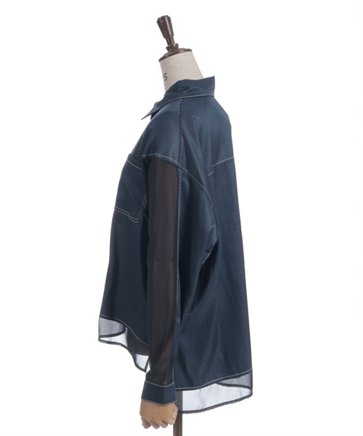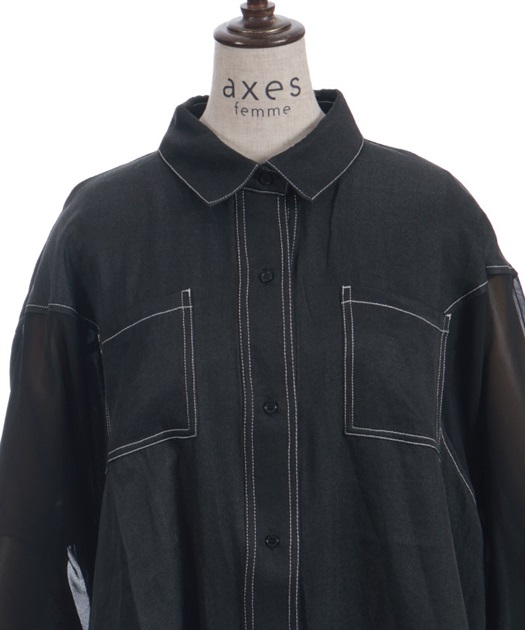 デニム×シアー切替シャツ