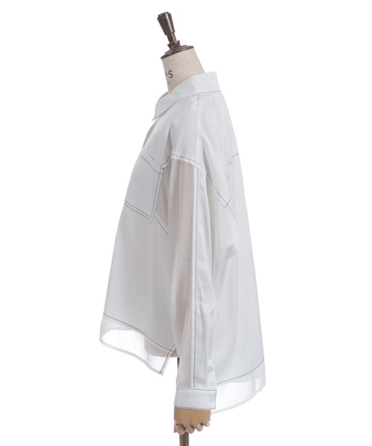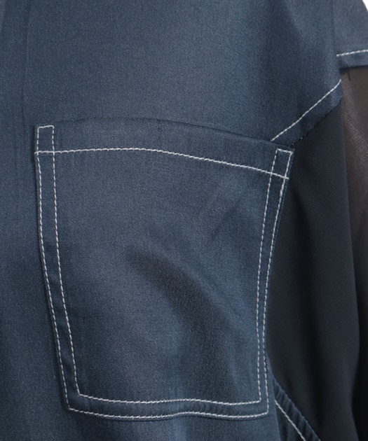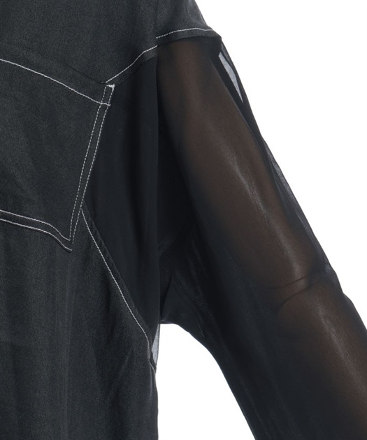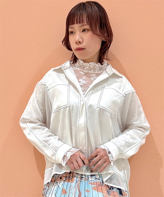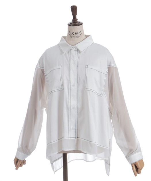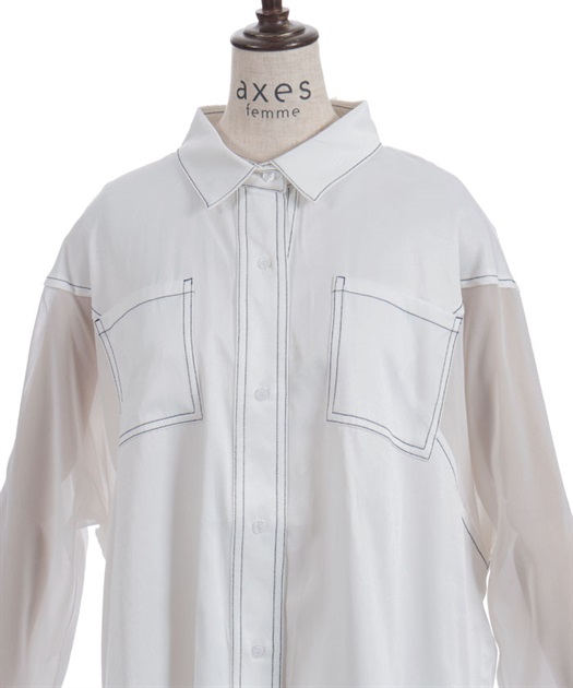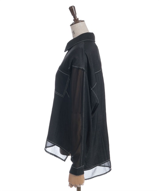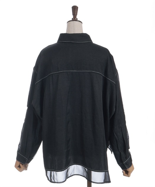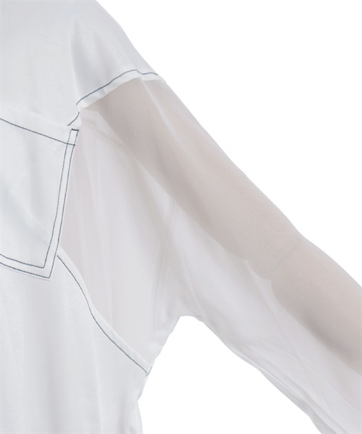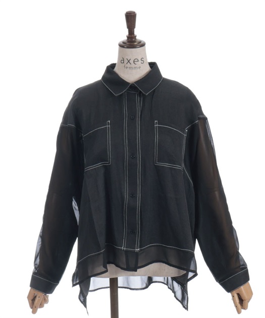デニム×シアー切替シャツ