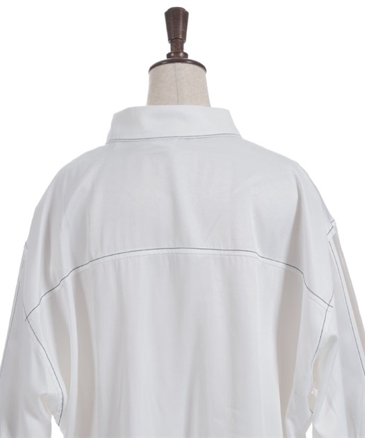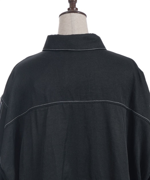ステッチ使いがアクセントになったデニム風デザイン。ほどよくゆとりのあるシルエットで、ラフに着こなせるのがポイントです。袖口や裾の切り替えがさりげなく、シンプルながらも表情のある仕上がりに。