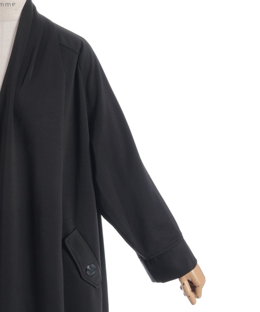 たっぷりとした贅沢な生地使いが特徴のコートです。